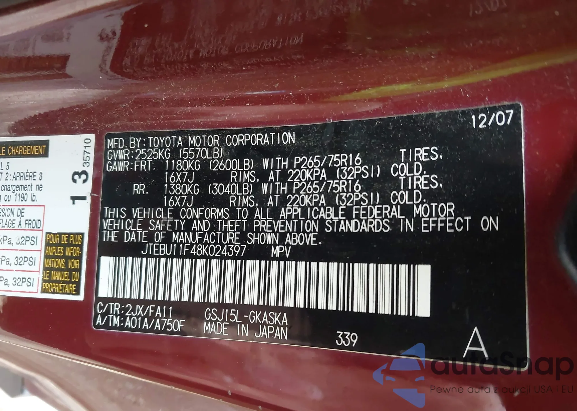 LOT: 44682447 VIN: JTEBU11F48K024397