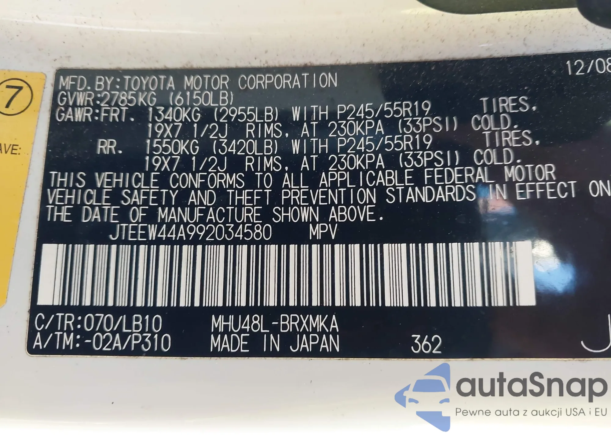 LOT: 43994796 VIN: JTEEW44A992034580