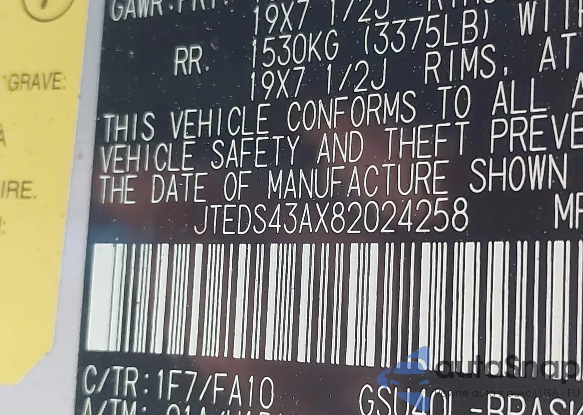 • VIN JTEDS43AX82024258