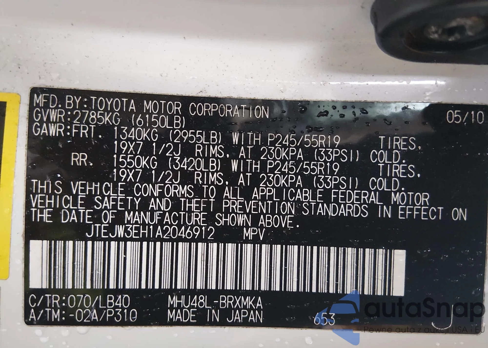 • VIN JTEJW3EH1A2046912