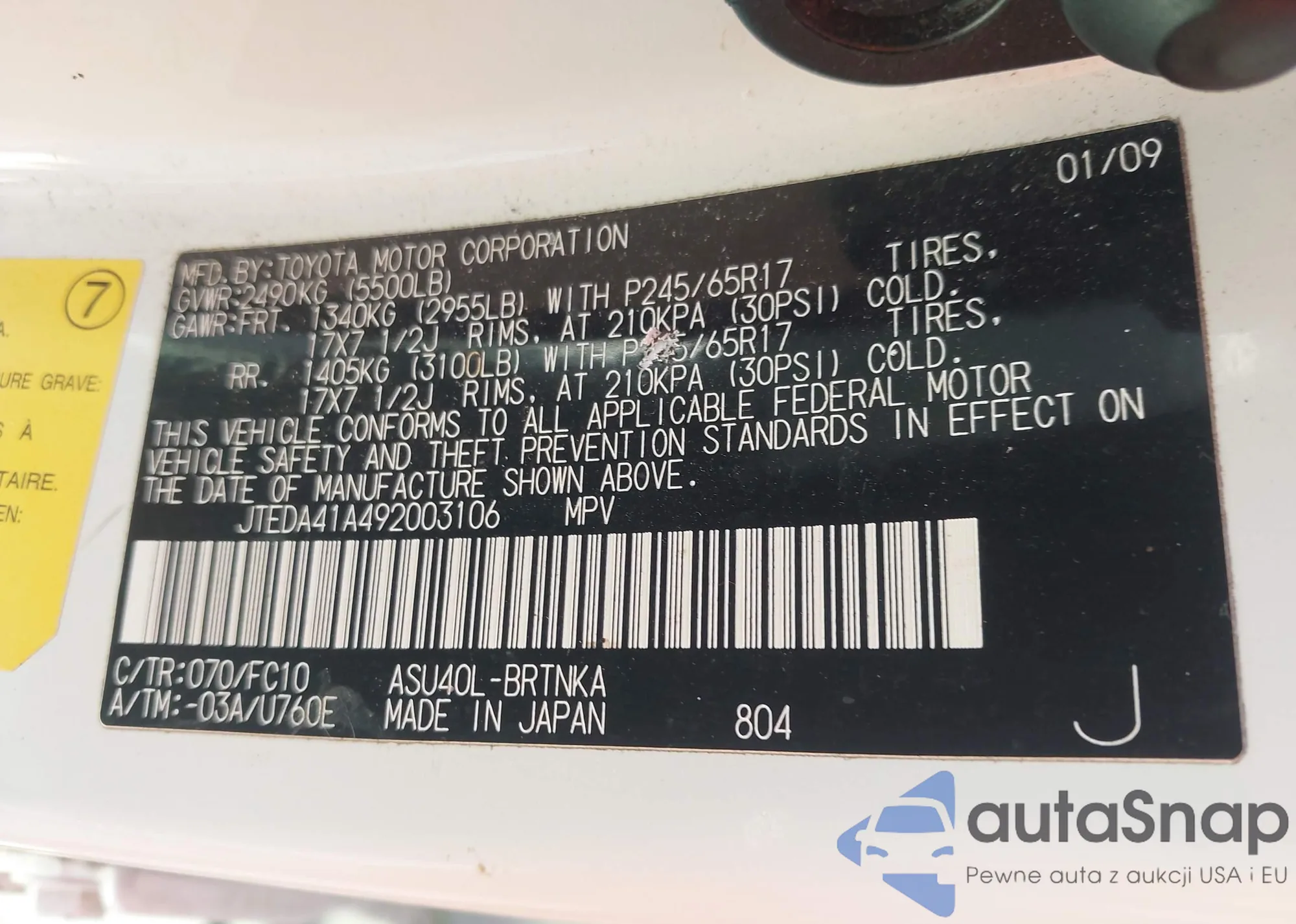 • VIN JTEDA41A492003106