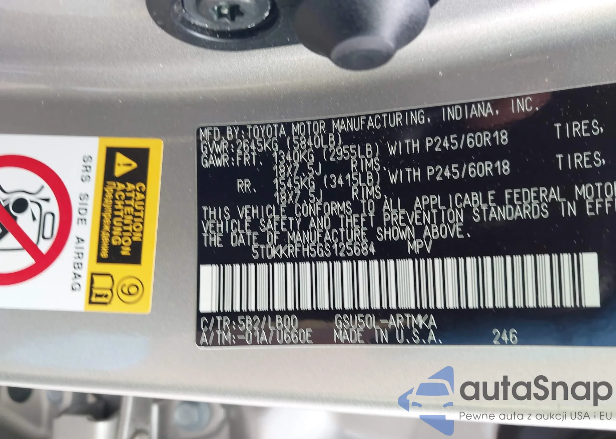 LOT: 76051285 VIN: 5TDJZRFH4KS930480