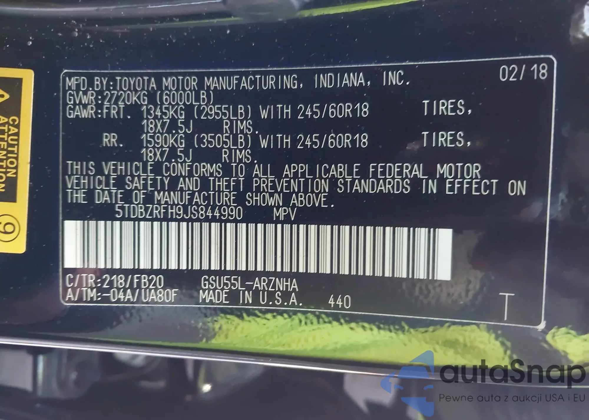 LOT: 43691154 VIN: 5TDBZRFH9JS844990