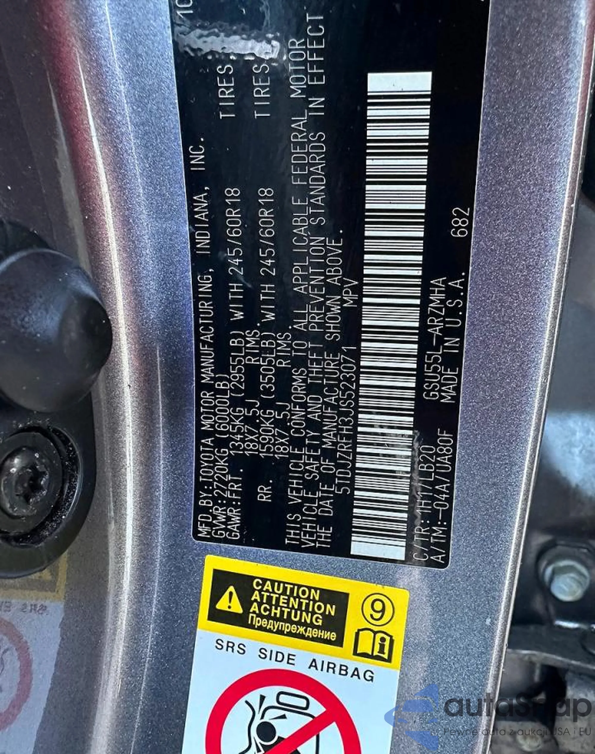 LOT: 76435425 VIN: 5TDJZRFH3JS523071