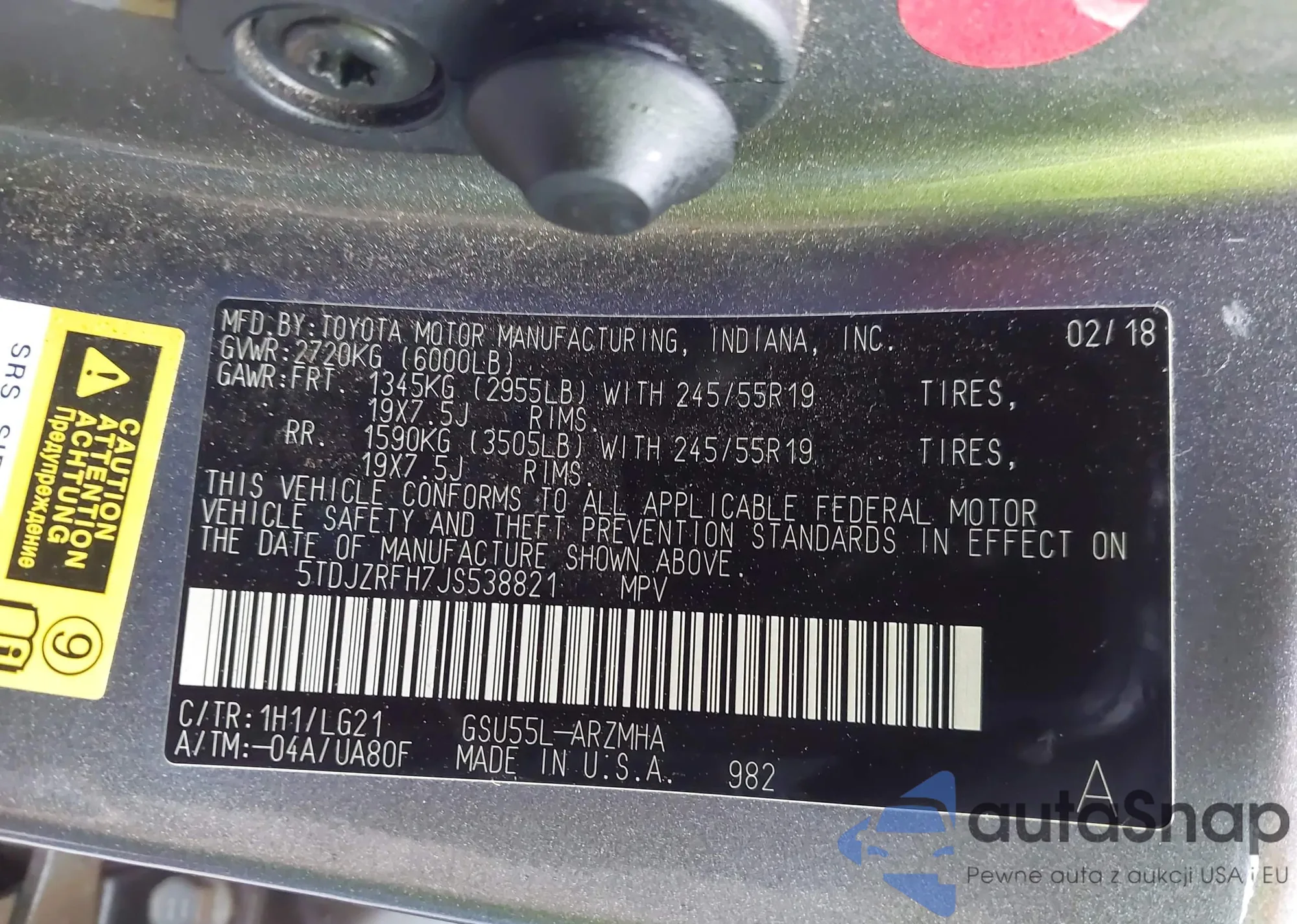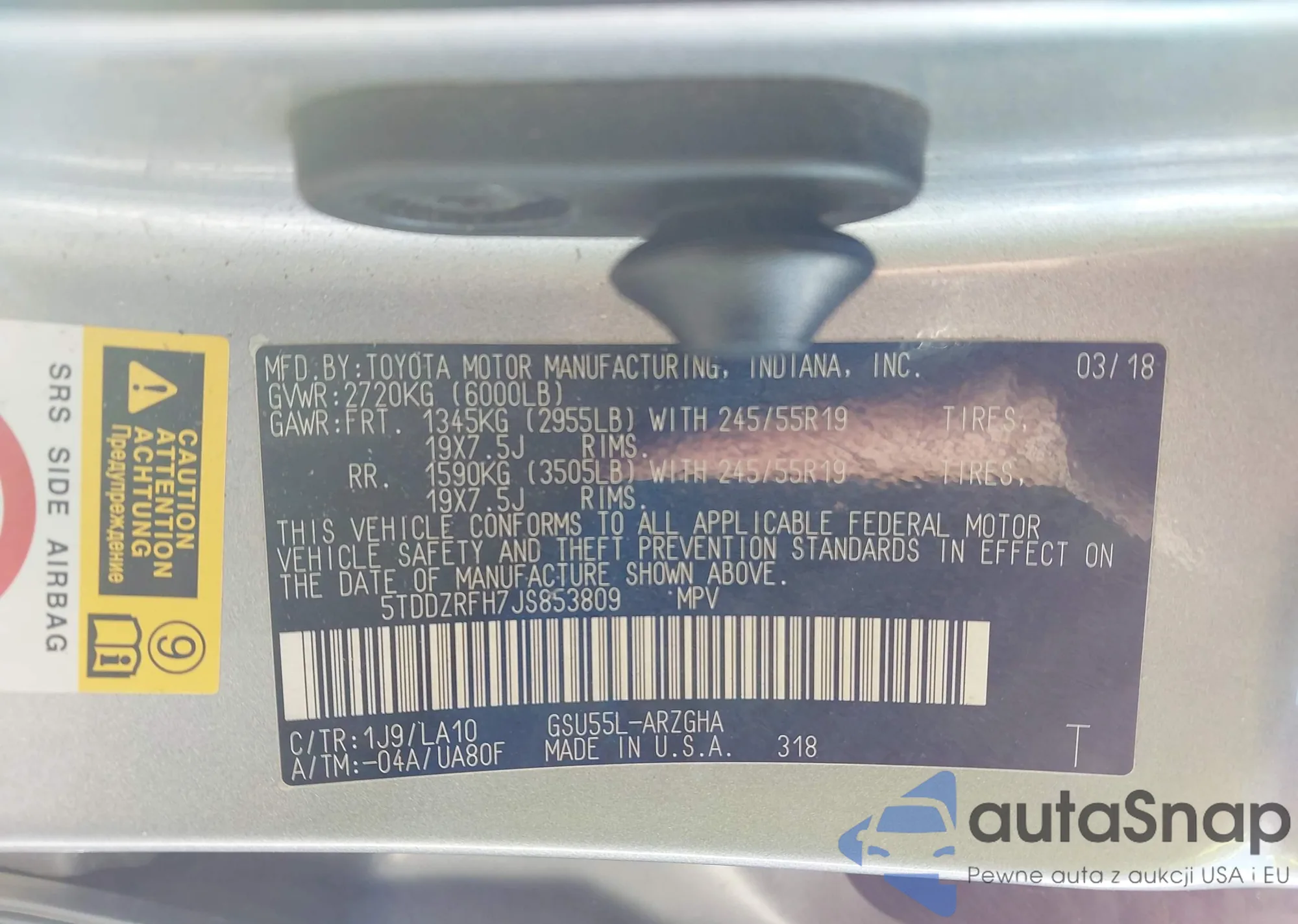 LOT: 43860367 VIN: 5TDJZRFH7JS538821