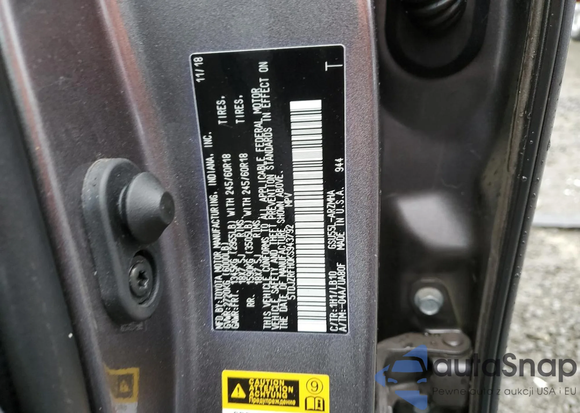 • VIN 5TDZZRFH7JS247285