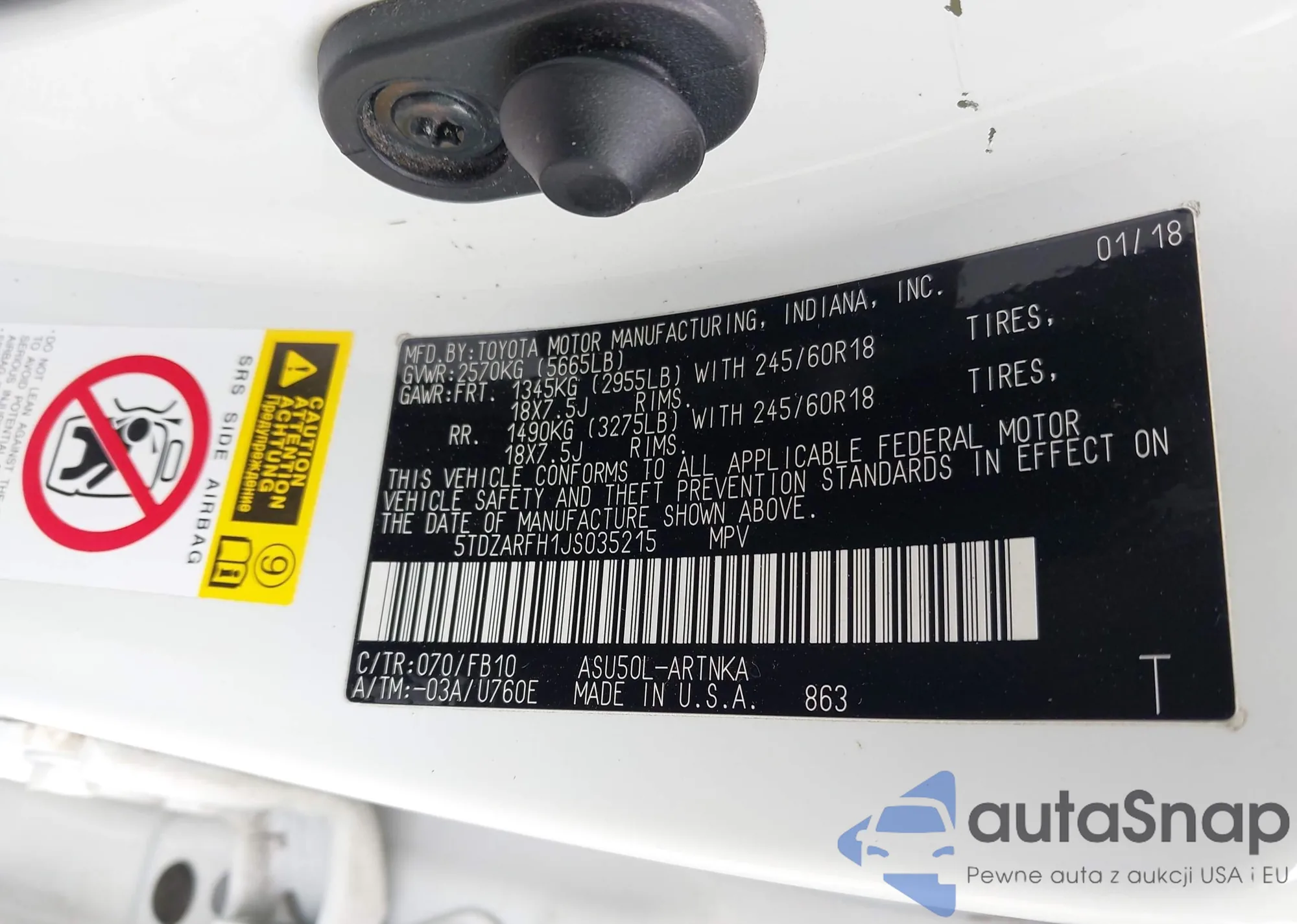 • VIN 5TDZARFH1JS035215