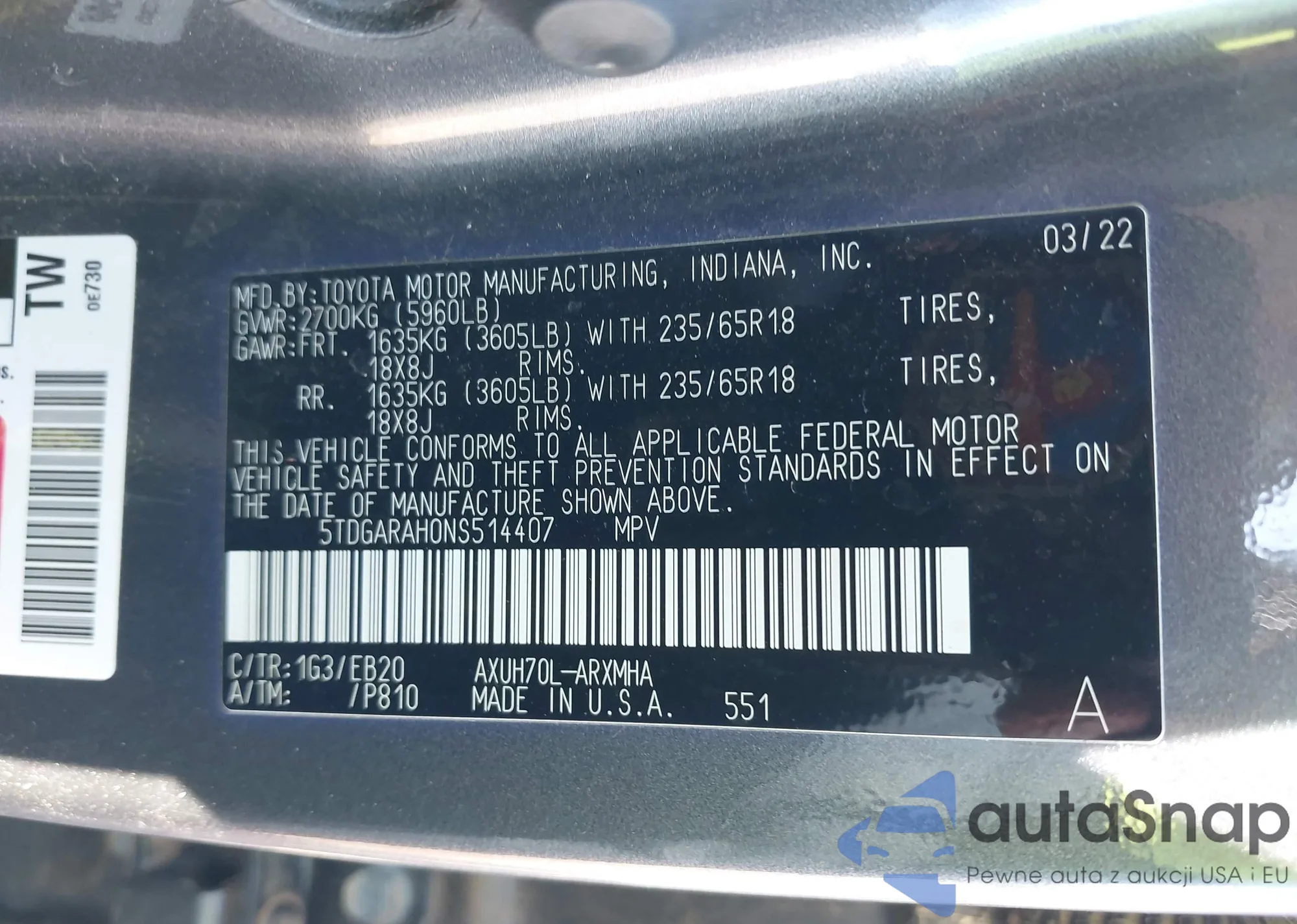 • VIN 5TDGARAH0NS514407