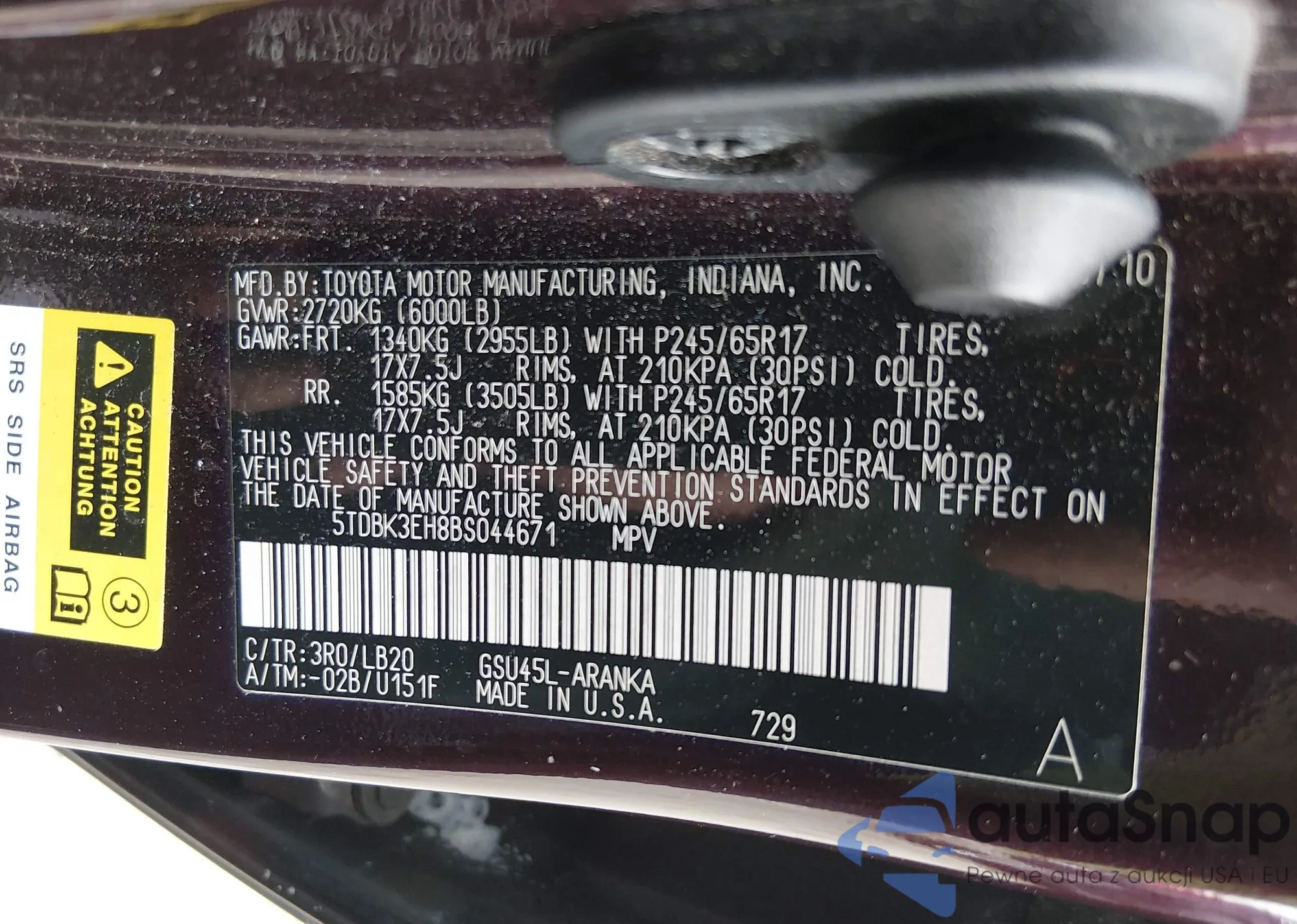 • VIN 5TDBK3EH8BS044671