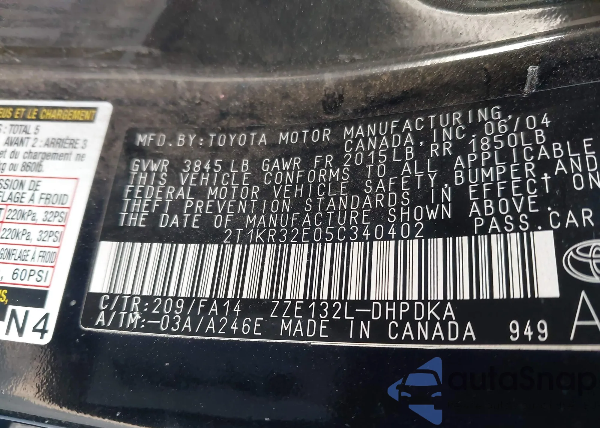 • VIN 2T1KR32E46C605775