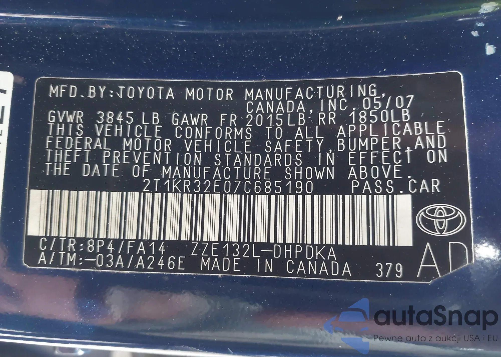 • VIN 2T1KR32E07C685190