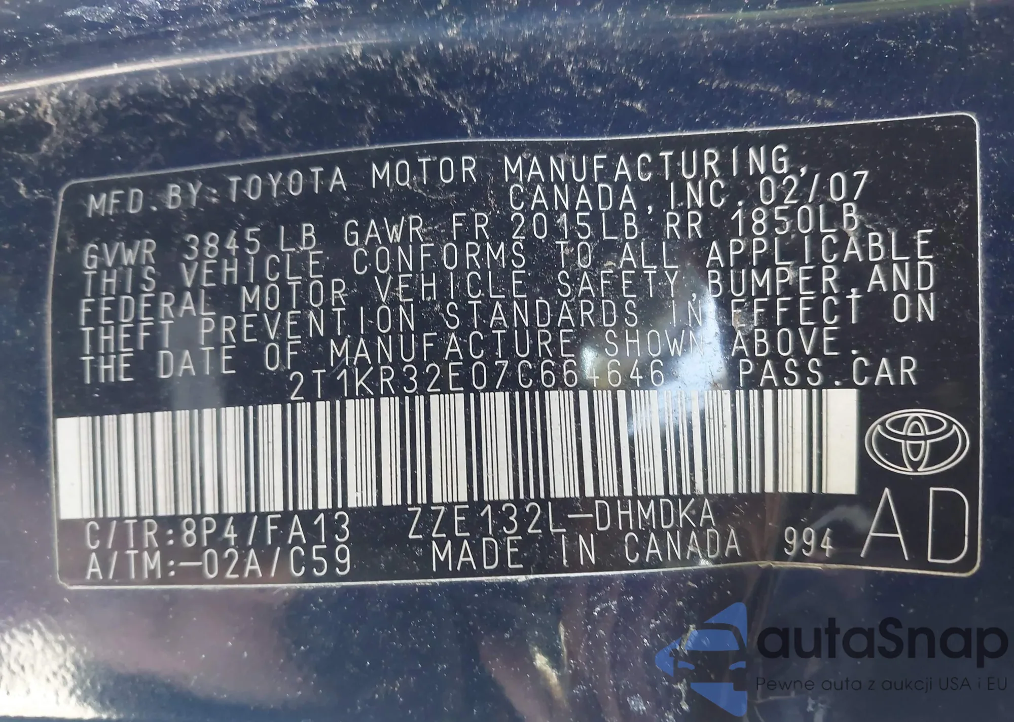 • VIN 2T1KR32E07C664646