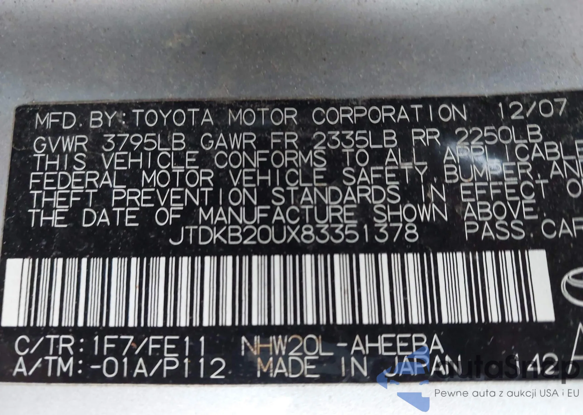 LOT: 44569181 VIN: JTDKB20U473239643