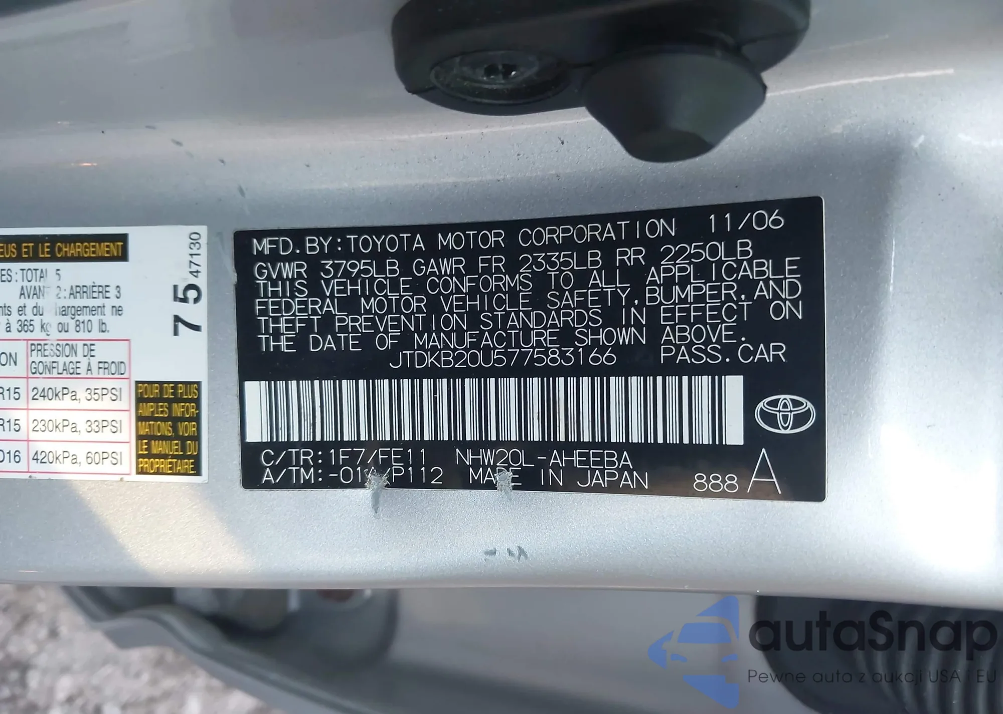 LOT: 82556785 VIN: JTDKB20U267507550