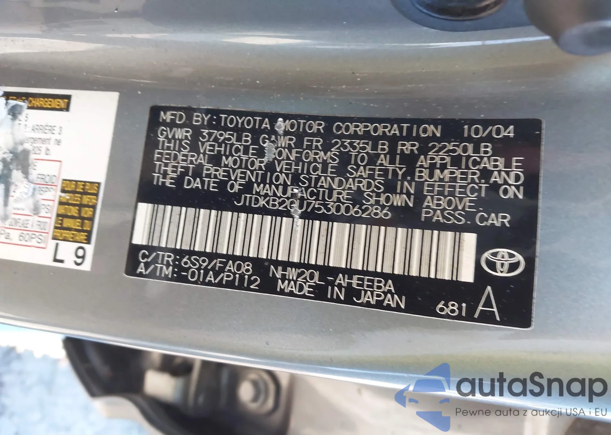 LOT: 44104472 VIN: JTDKB20U753006286
