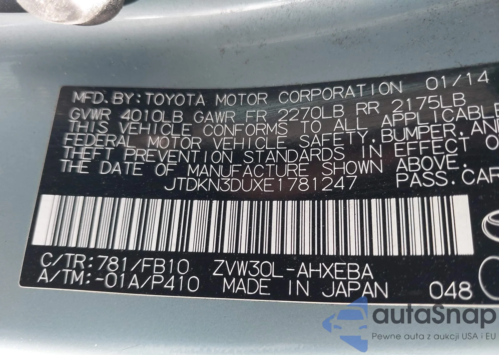 • VIN JTDKN3DUXE1781247
