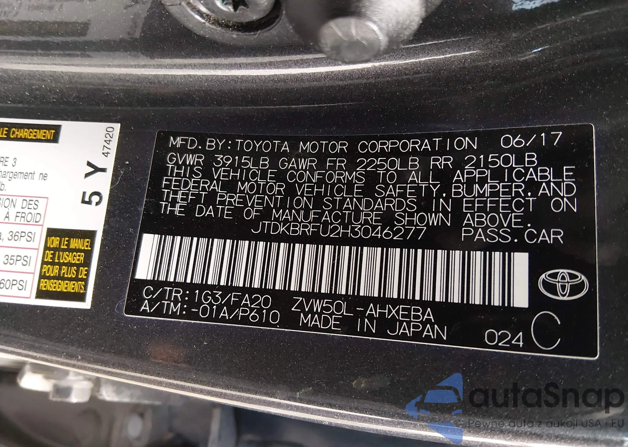 LOT: 44166596 VIN: JTDKBRFU2H3046277