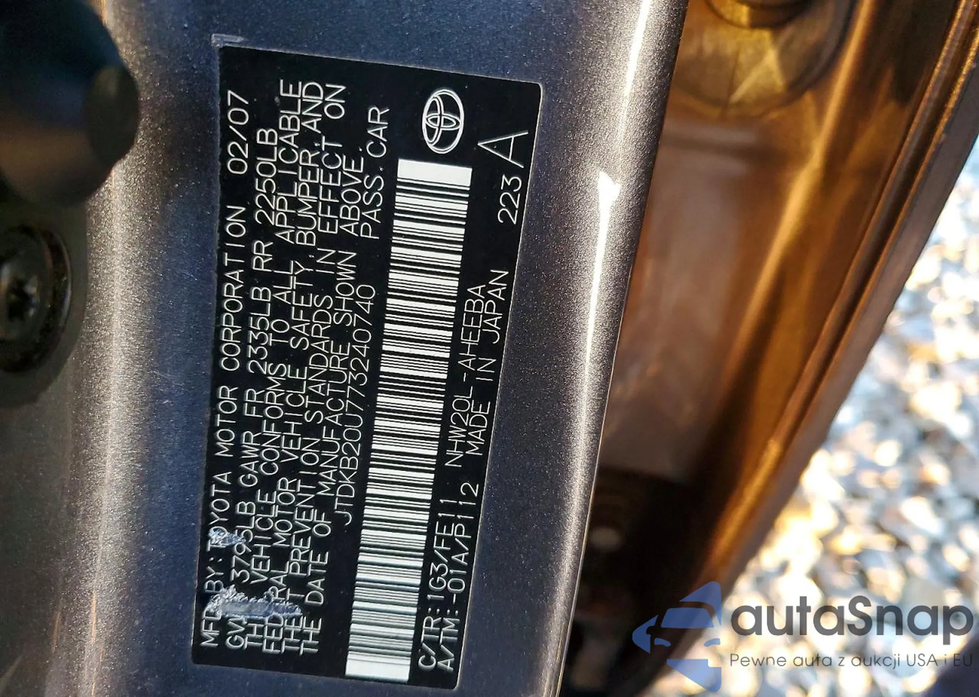 LOT: 73331405 VIN: JTDKB20U773240740