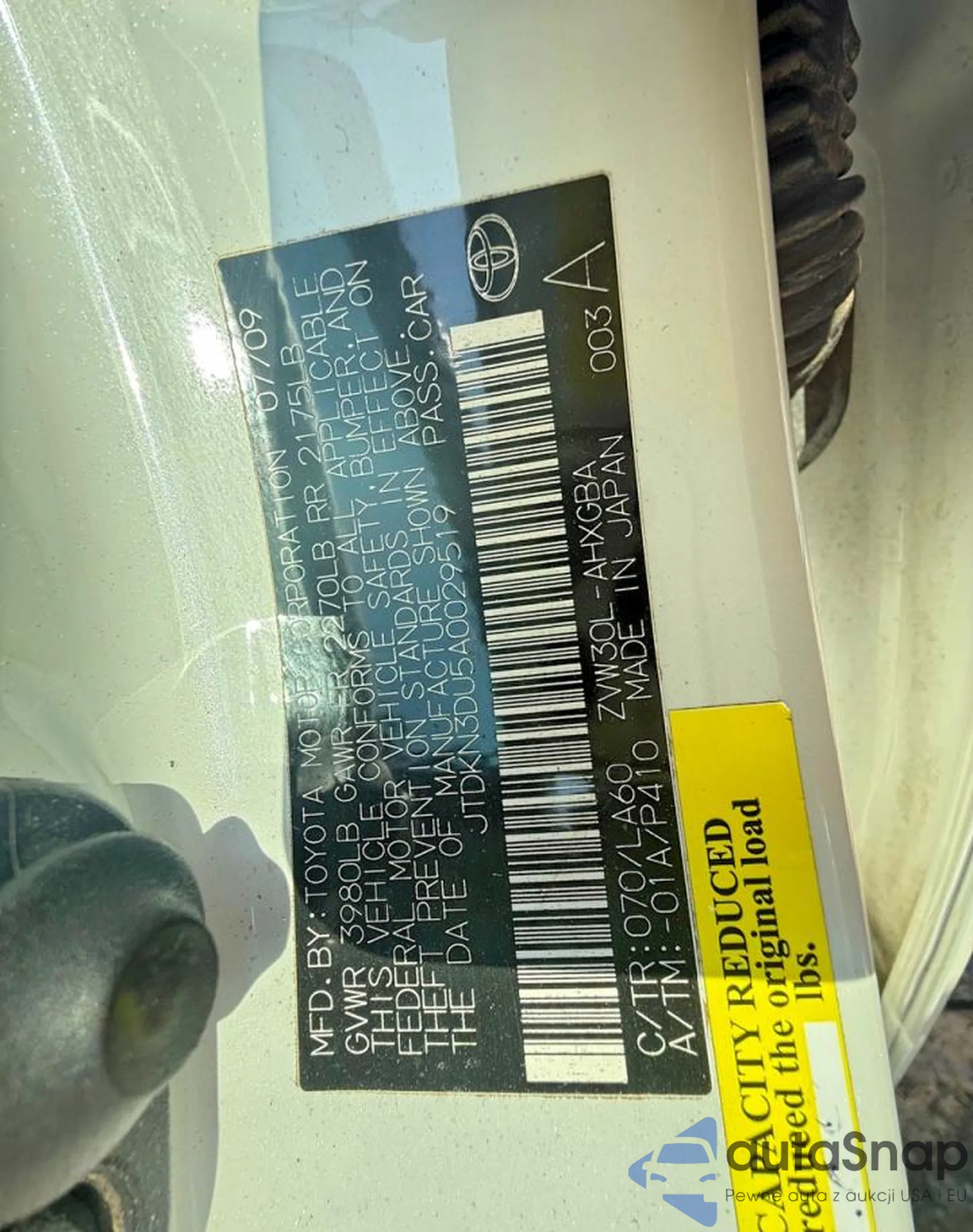 LOT: 75598375 VIN: JTDKN3DU5A0029519
