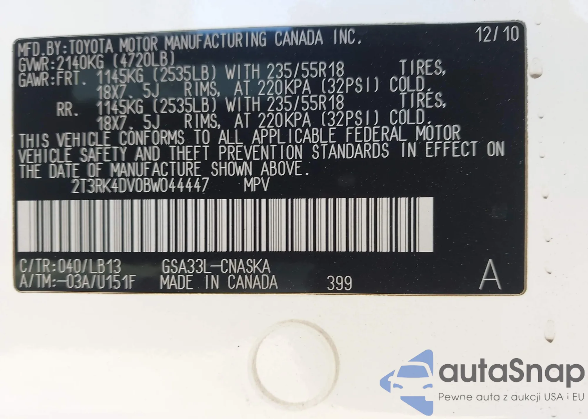 • VIN 2T3RK4DV0BW044447