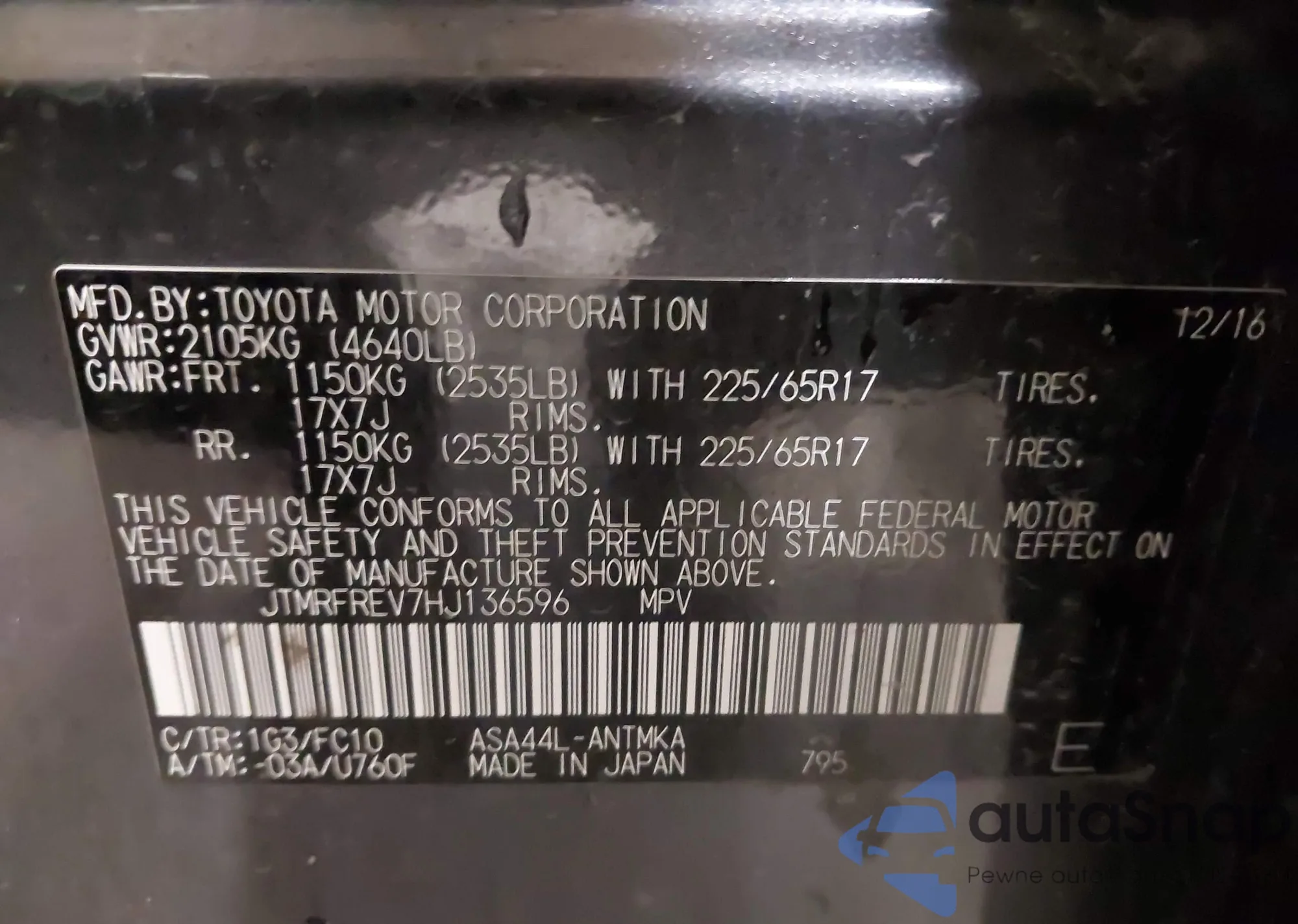 • VIN JTMRFREV7HJ136596