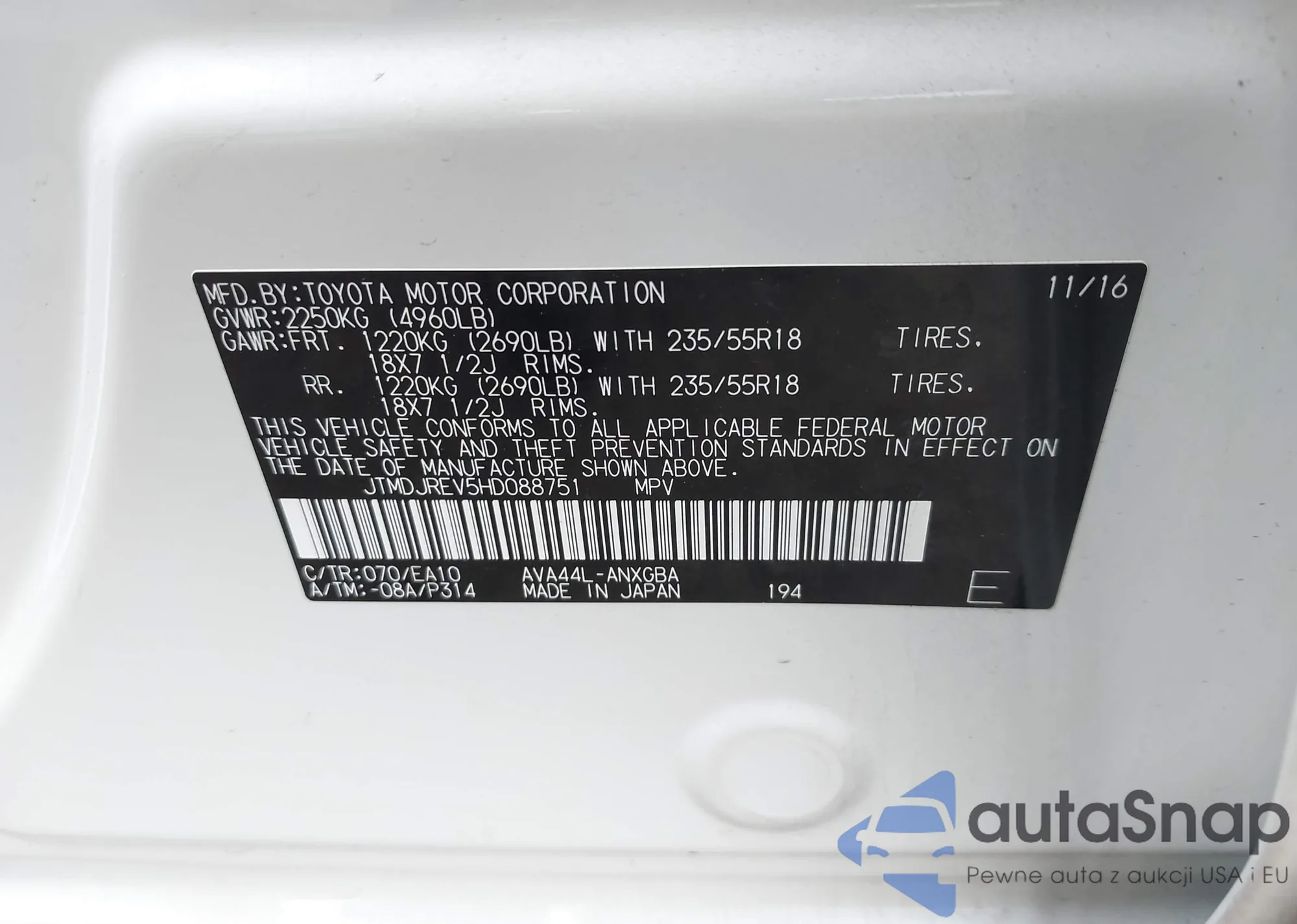 • VIN JTMDJREV5HD088751