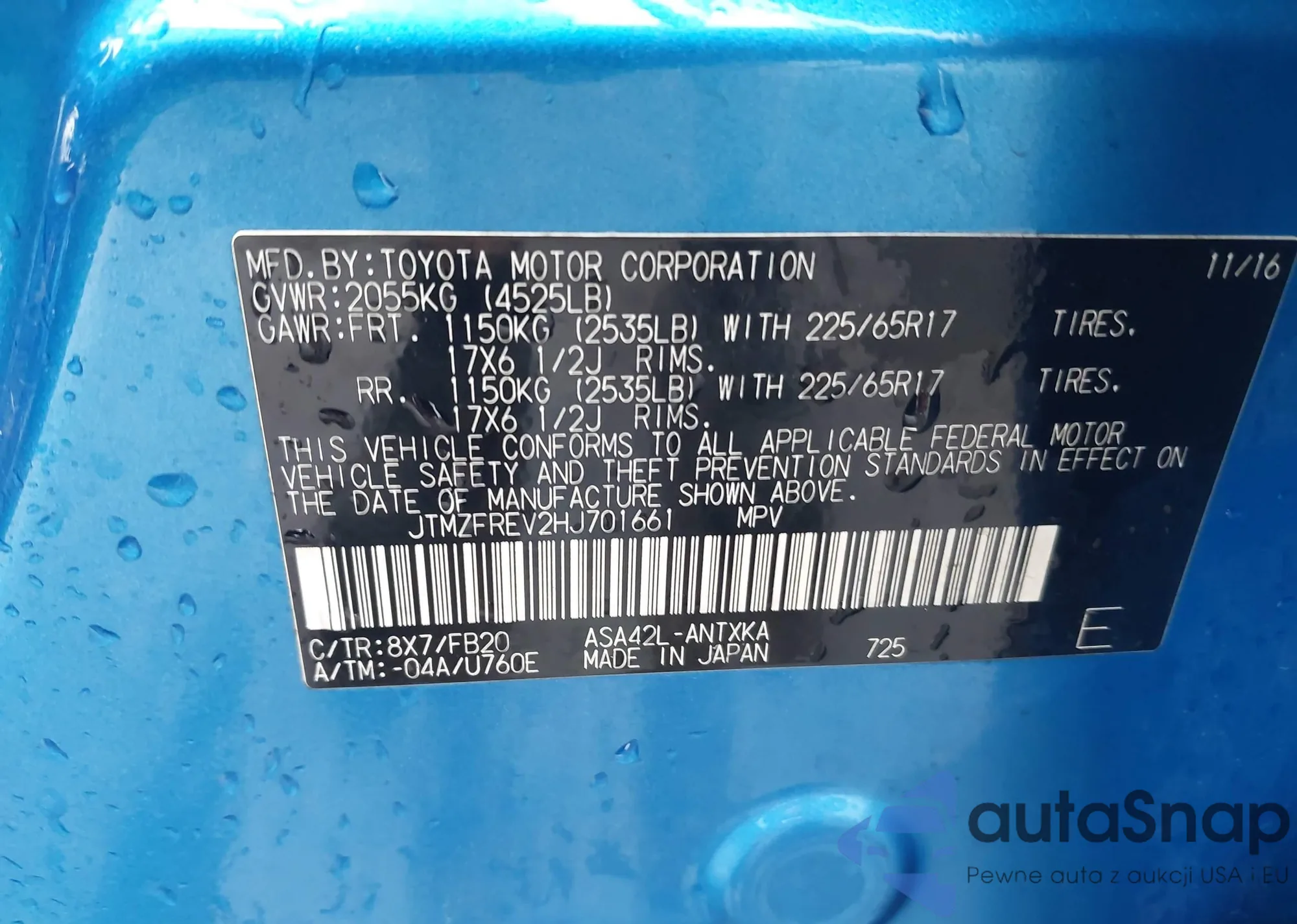 • VIN JTMZFREV2HJ701661