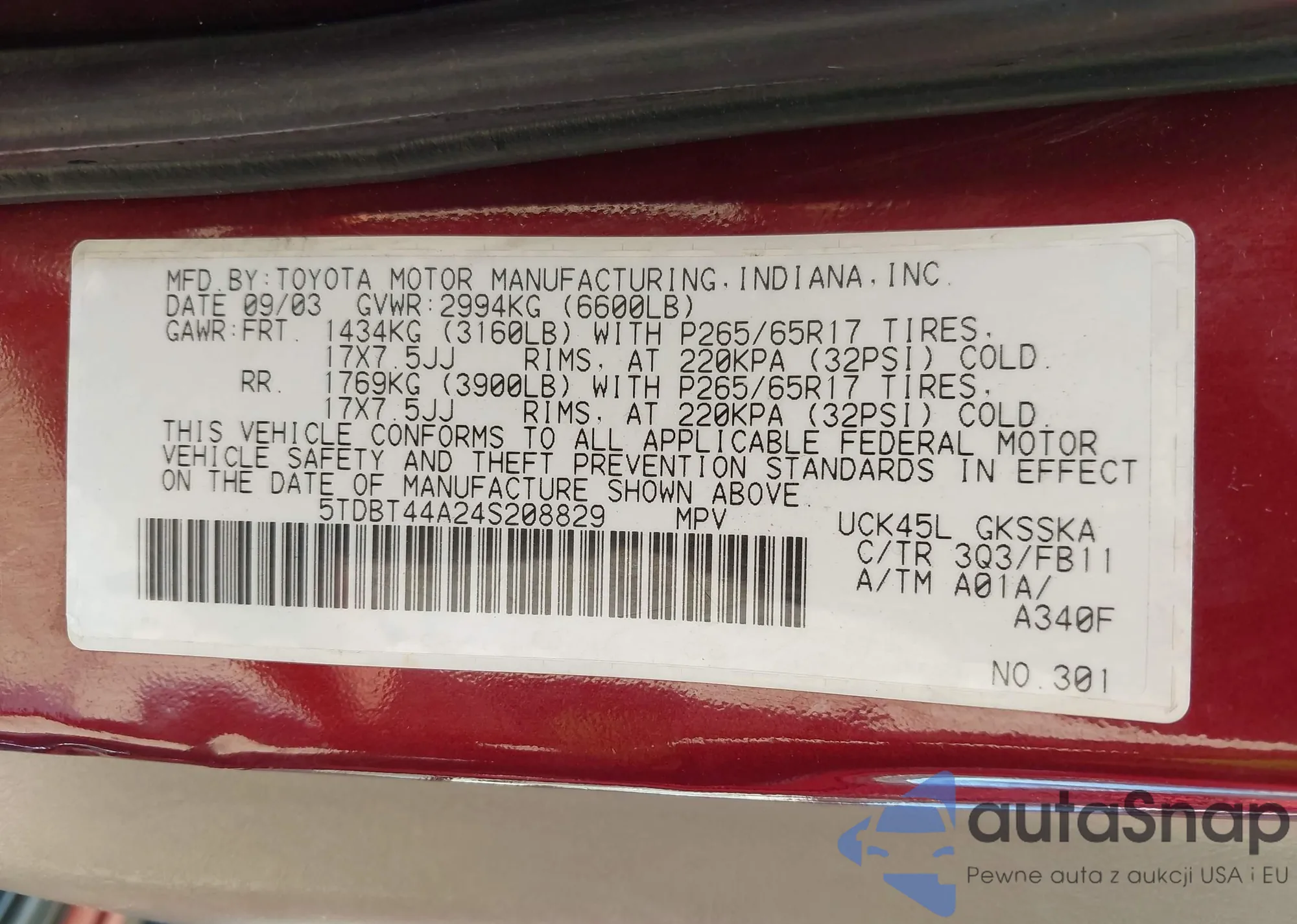LOT: 44486931 VIN: 5TDBT44A24S208829