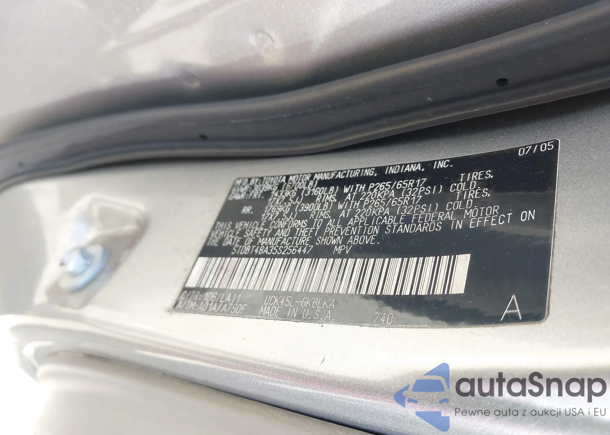 LOT: 44612194 VIN: 5TDBT48A35S256447