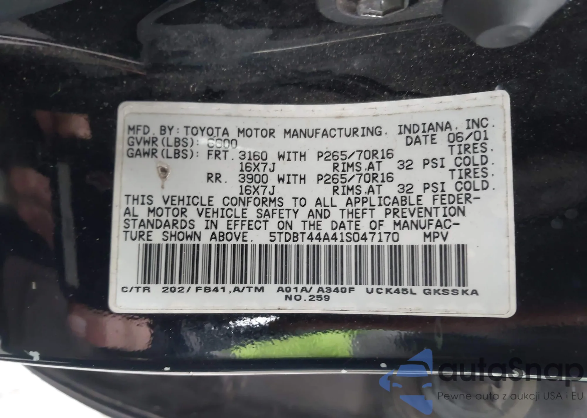 • VIN 5TDBT44A41S047170