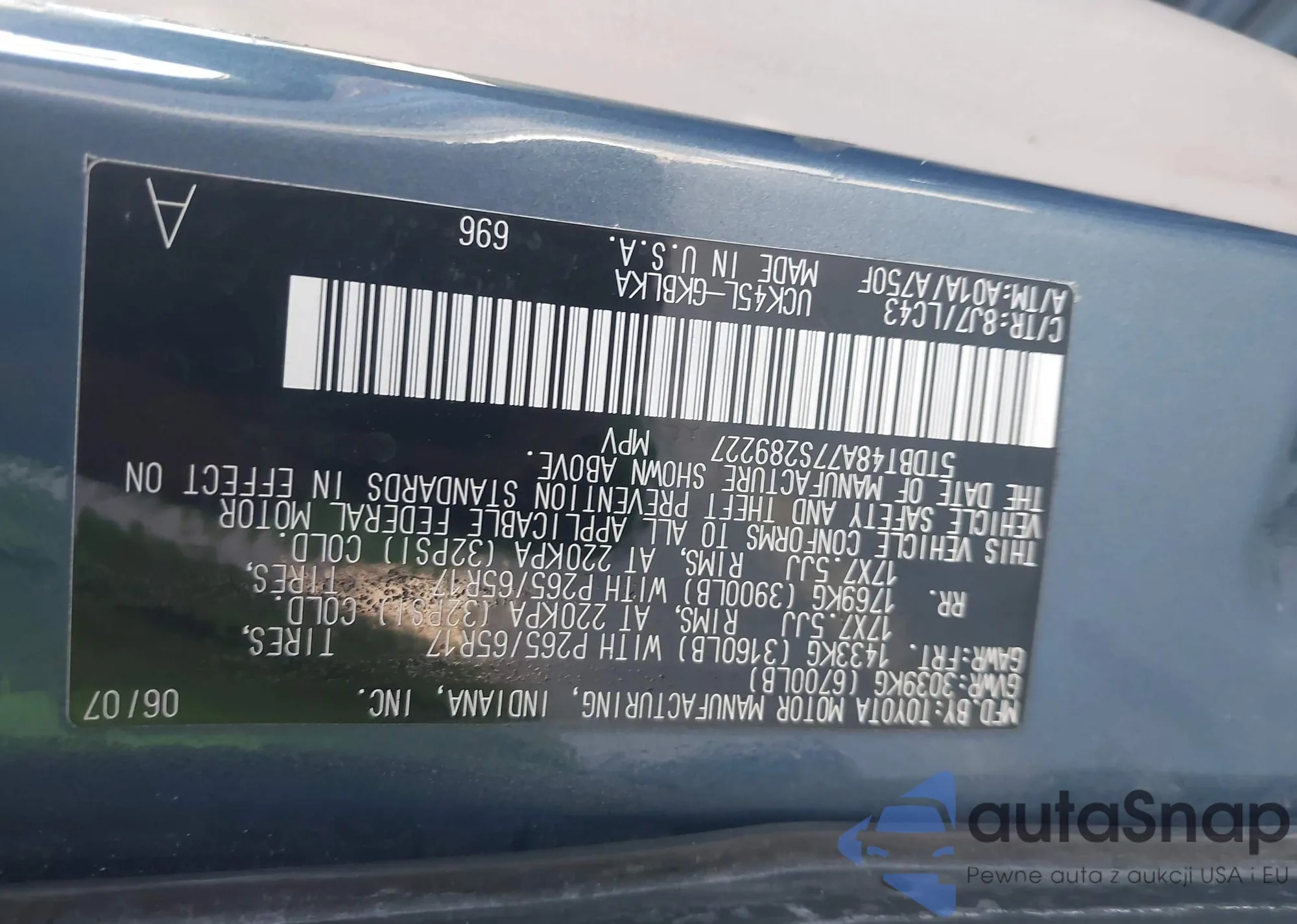 LOT: 44210389 VIN: 5TDBT48A77S289227