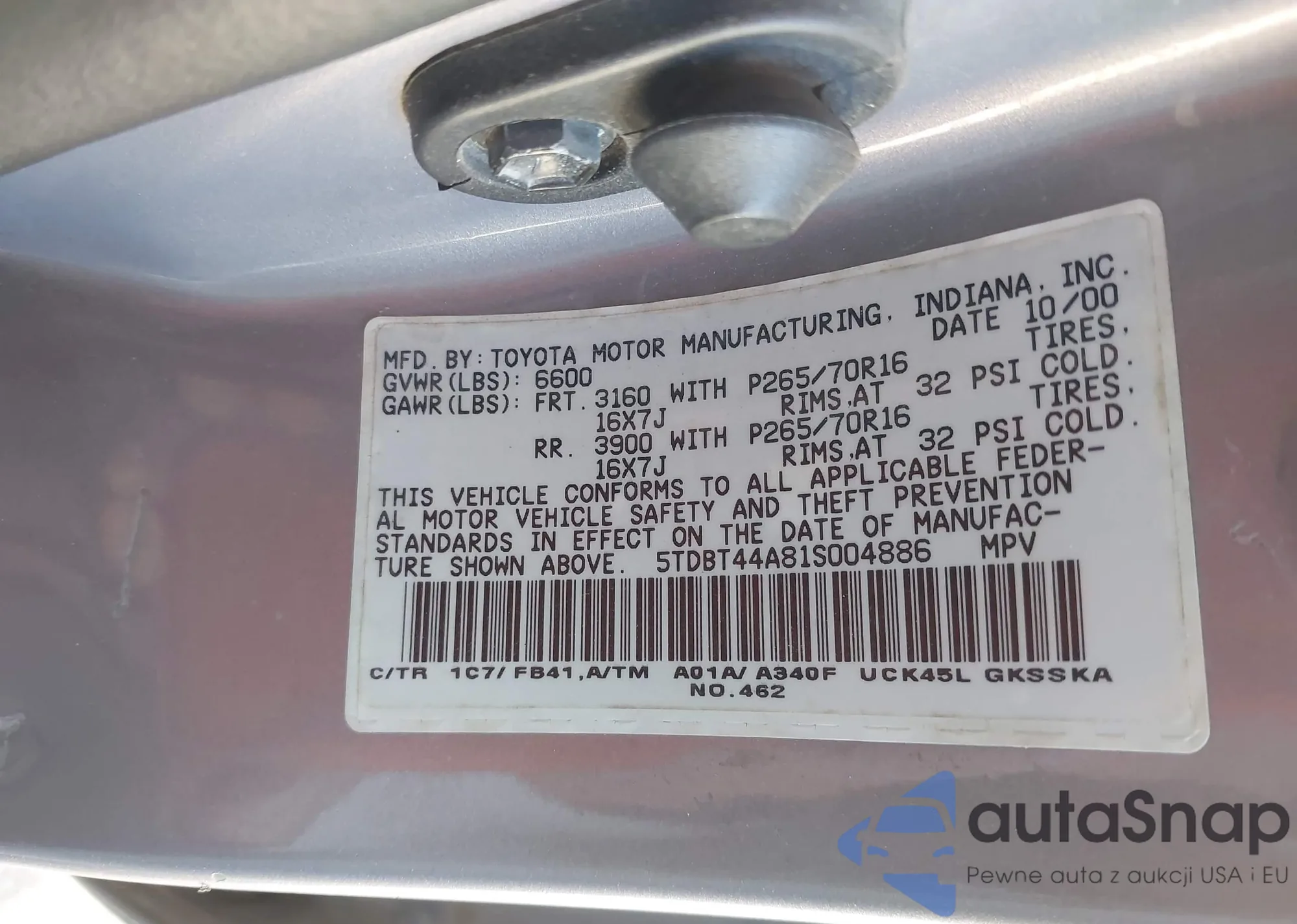 LOT: 43975777 VIN: 5TDBT48A51S050220