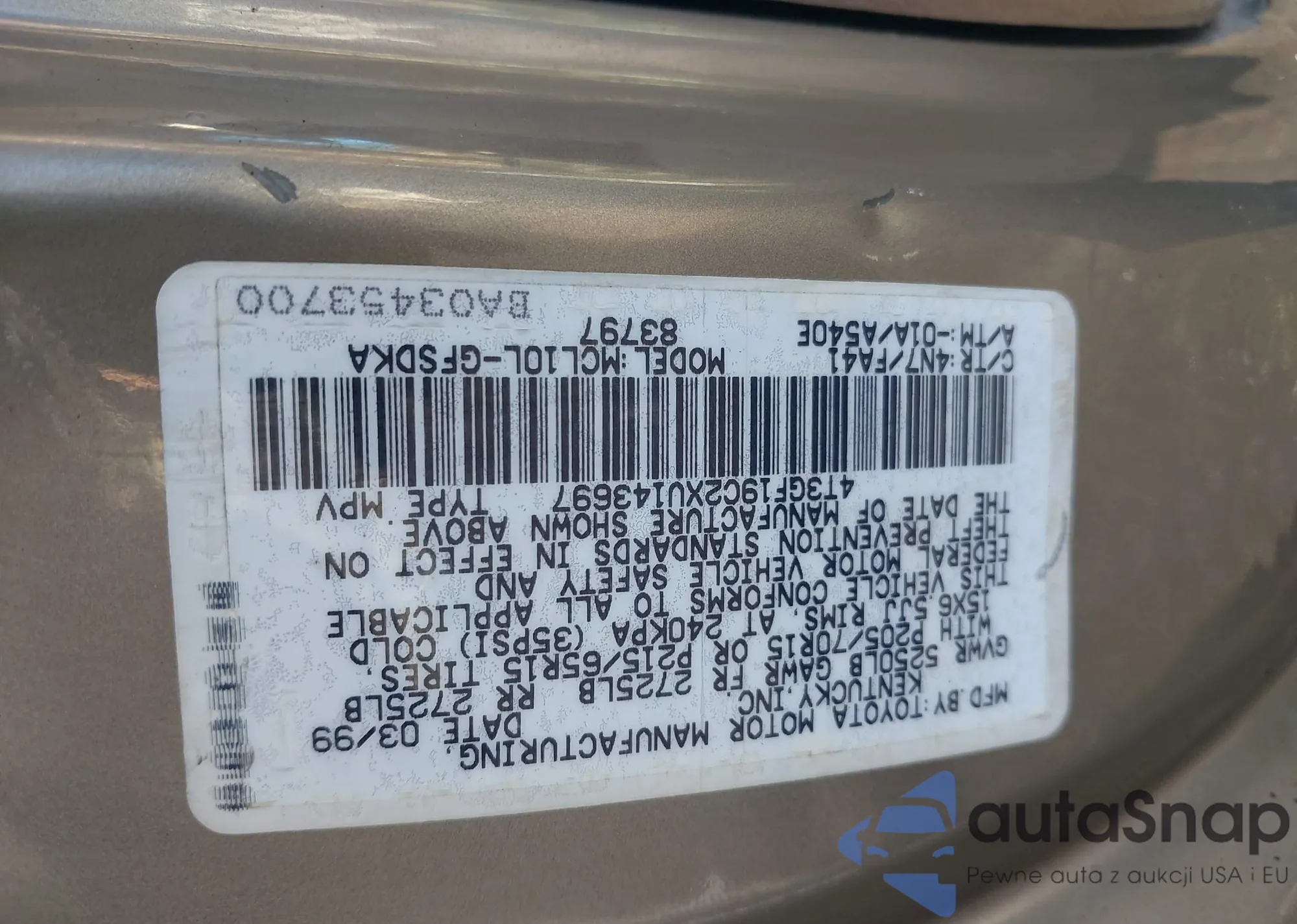 LOT: 43351456 VIN: 4T3GF19C2XU143697