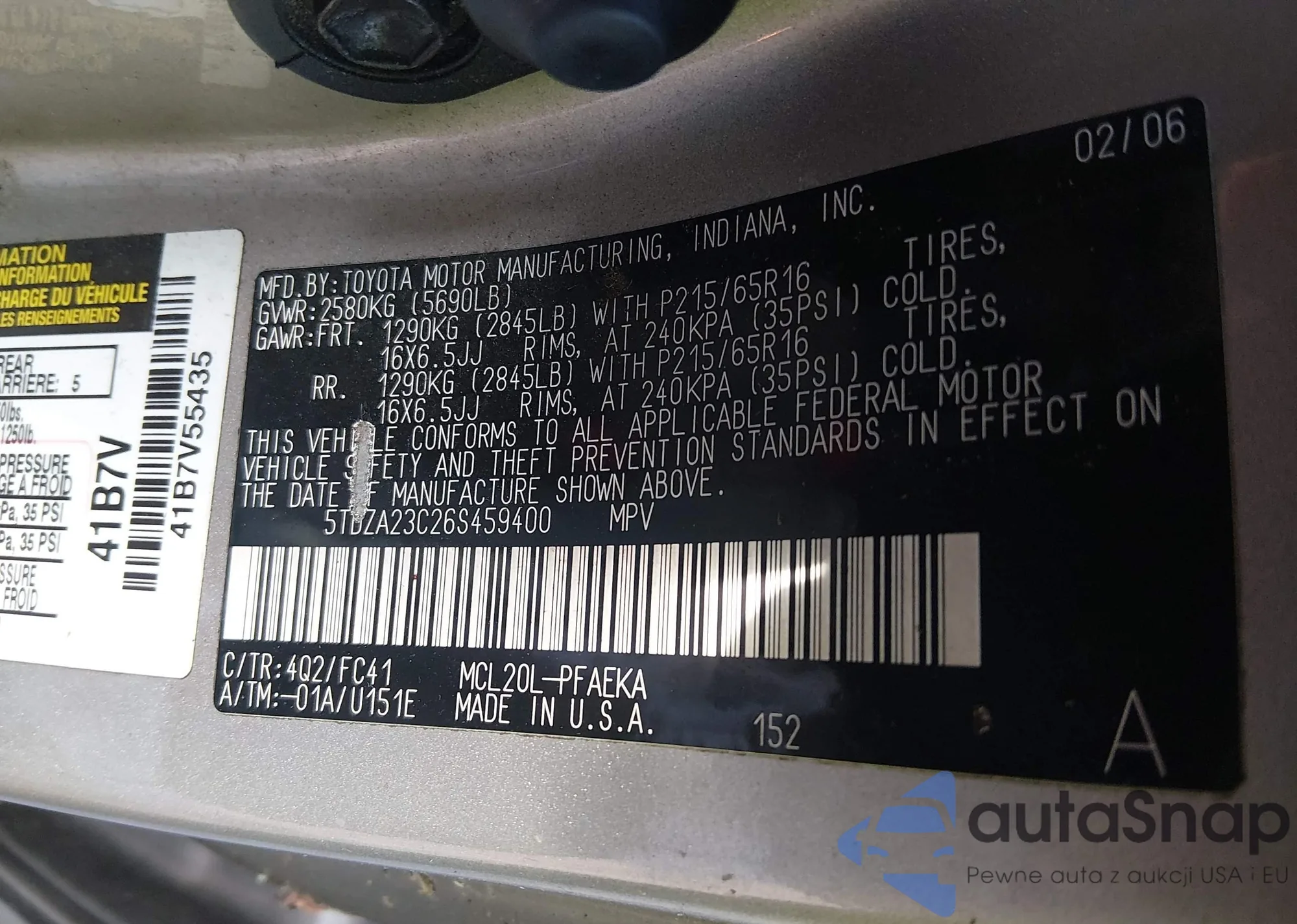 LOT: 44137689 VIN: 5TDZA23C26S459400