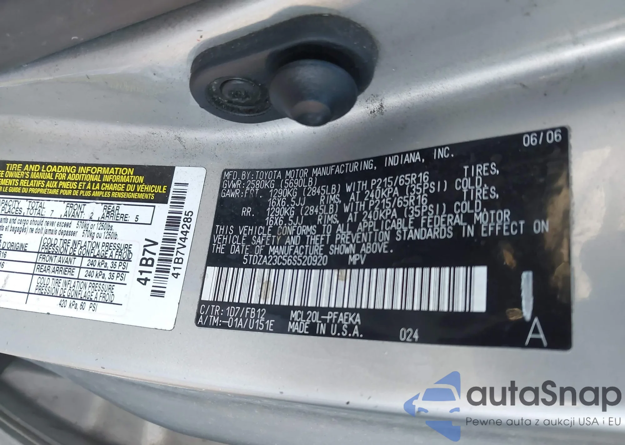• VIN 5TDZA23C56S520920