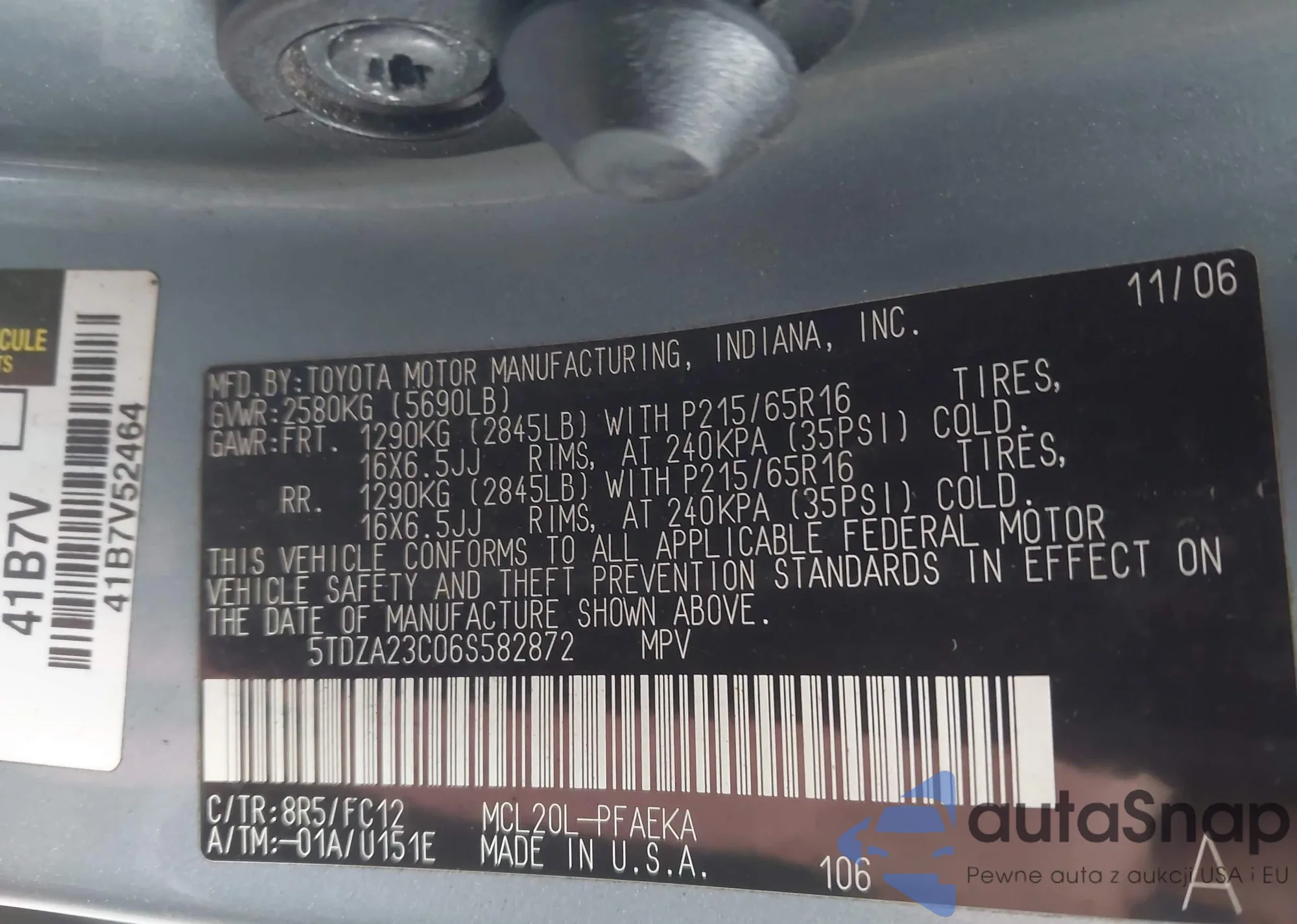 LOT: 44400257 VIN: 5TDZA23C06S582872