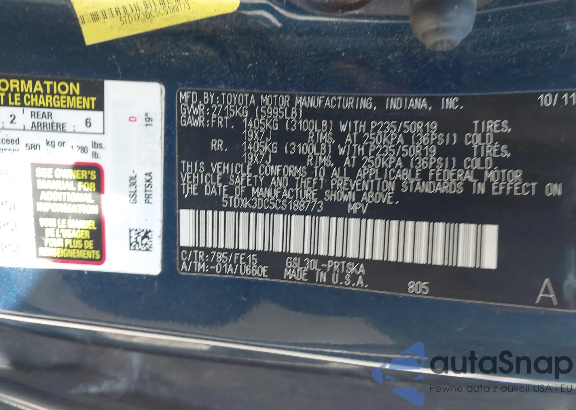• VIN 5TDXK3DC5CS188773