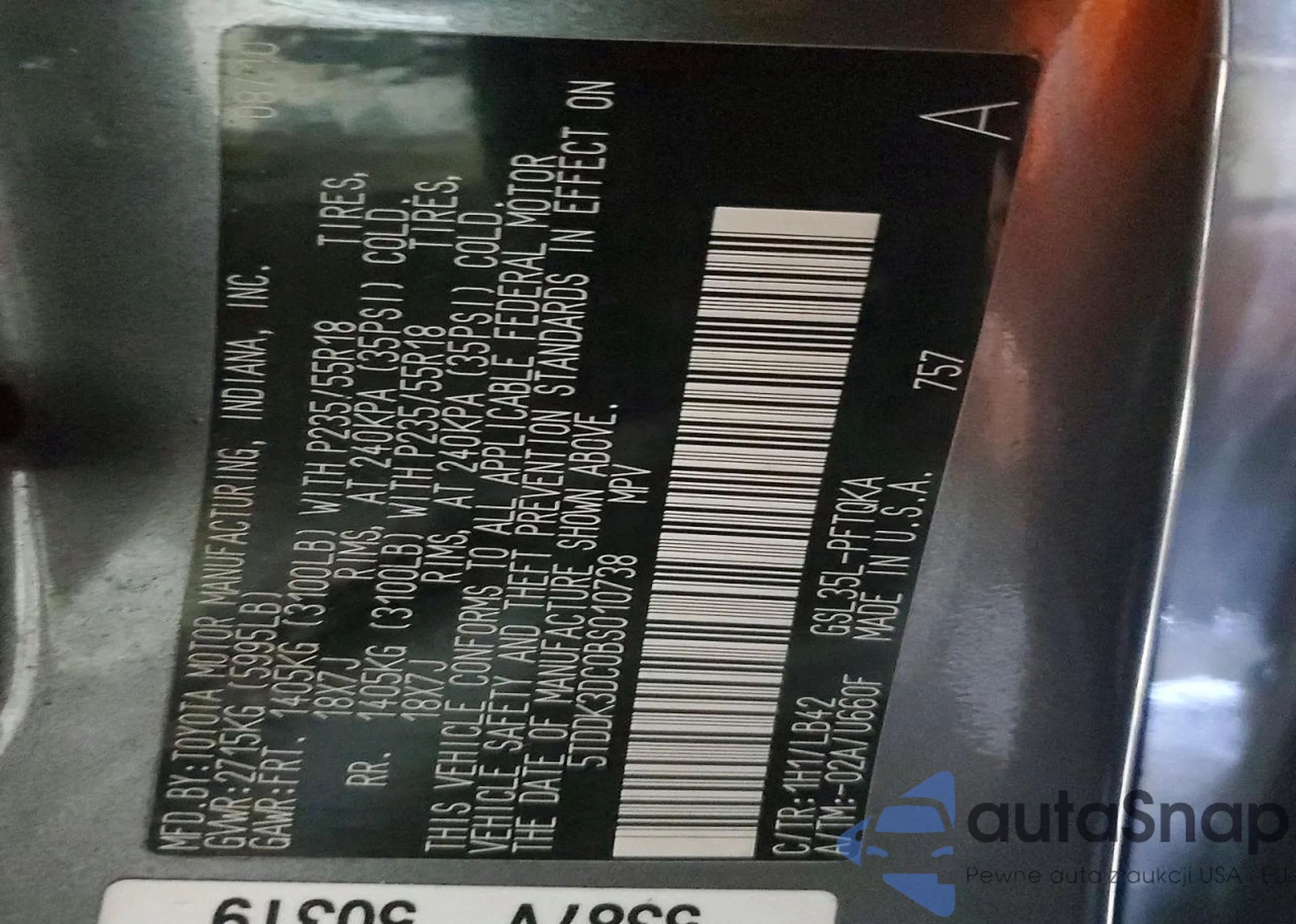 • VIN 5TDDK3DC0BS010738