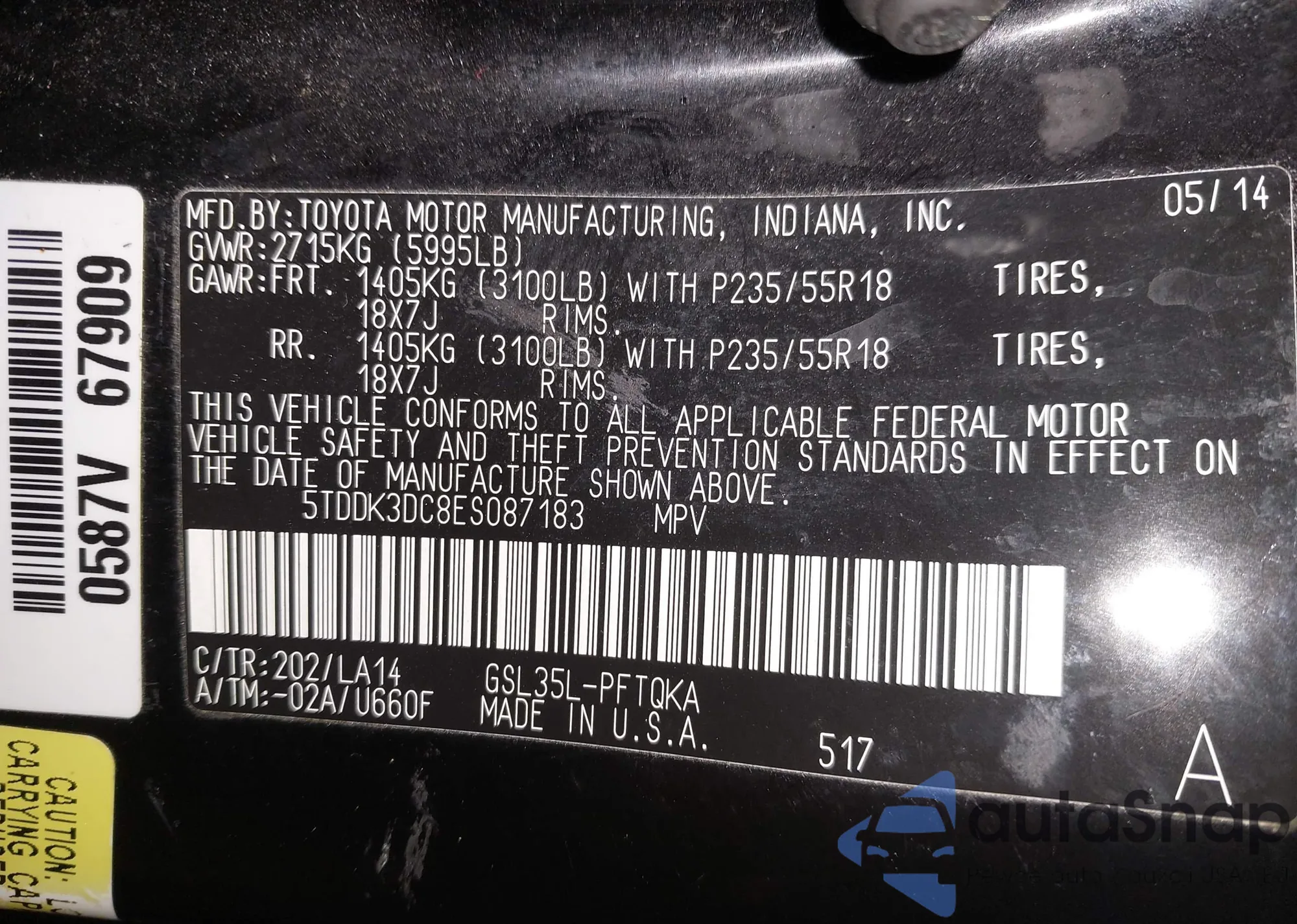• VIN 5TDDK3DC8ES087183