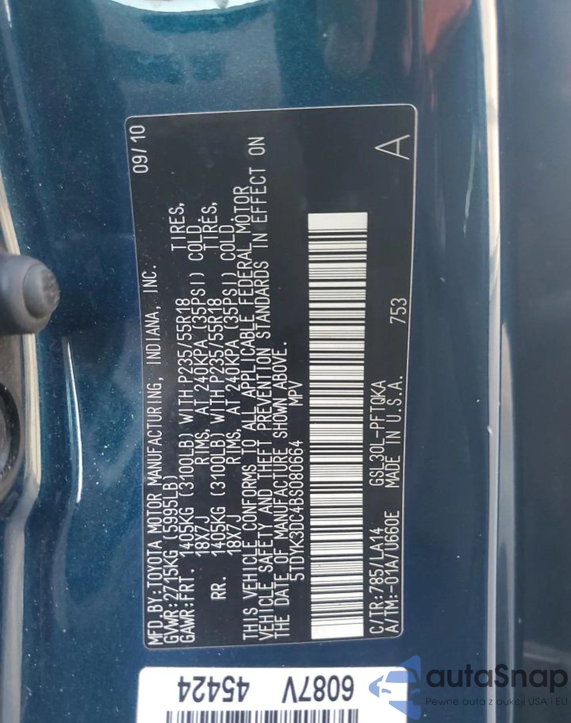 • VIN 5TDYK3DC4BS080664