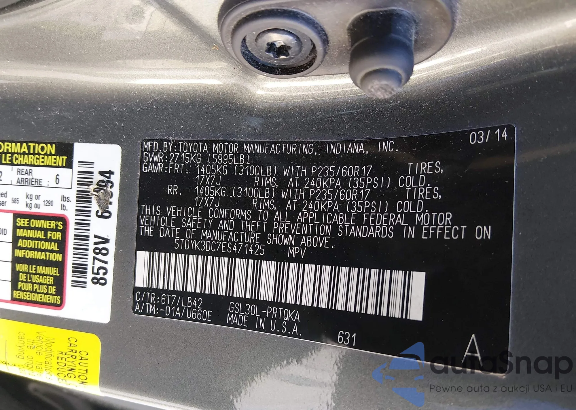 • VIN 5TDYK3DC7ES471425