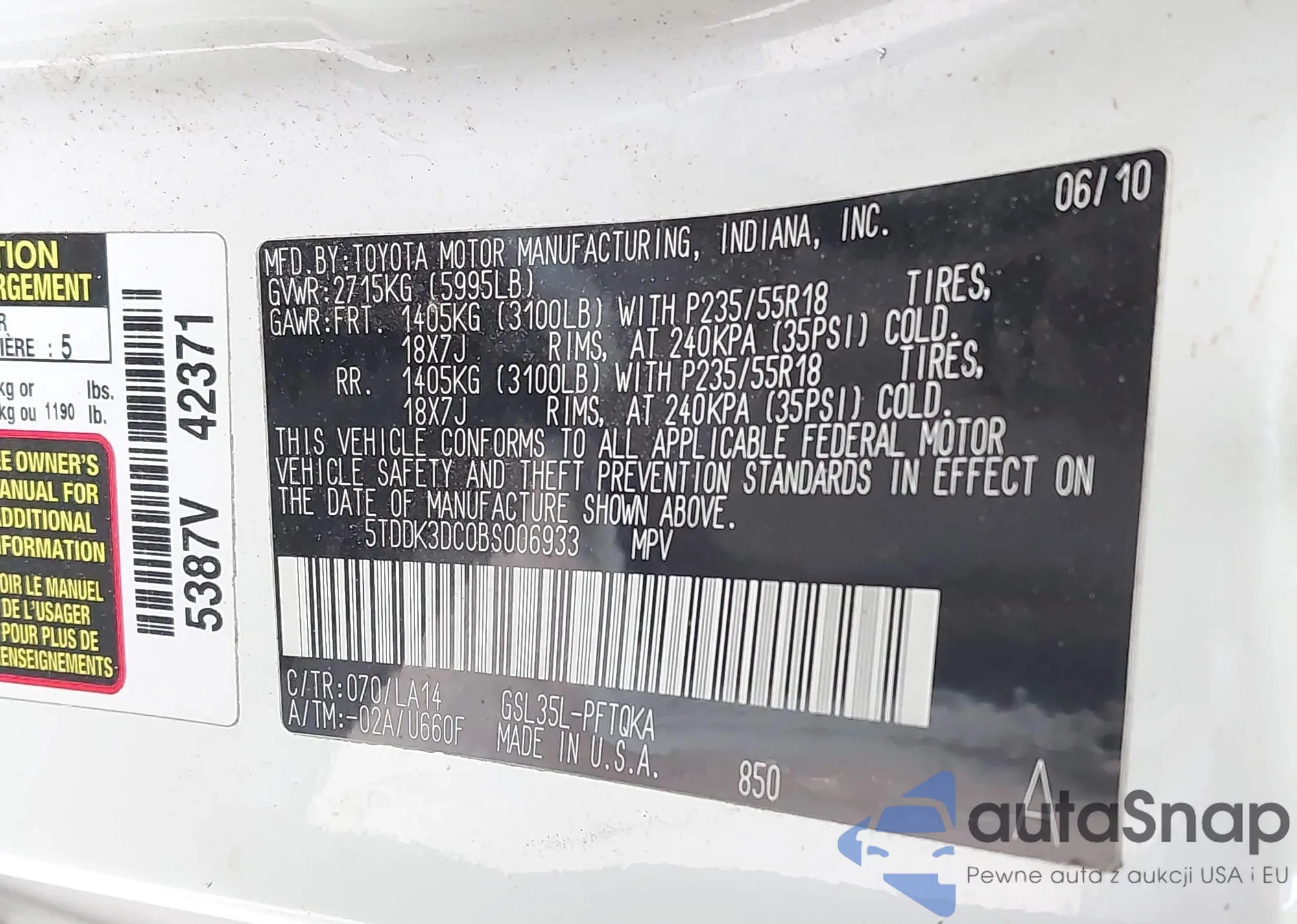 • VIN 5TDDK3DC0BS006933