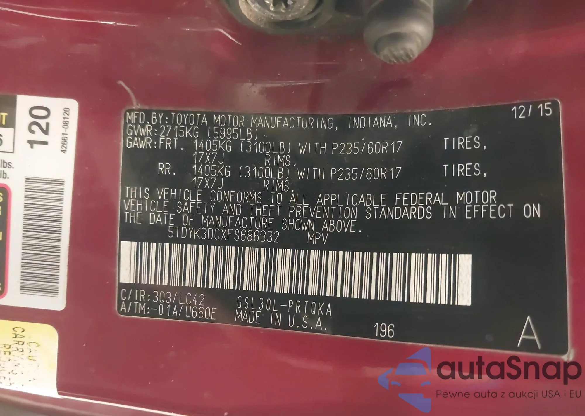 LOT: 44084150 VIN: 5TDKK3DC9FS549775