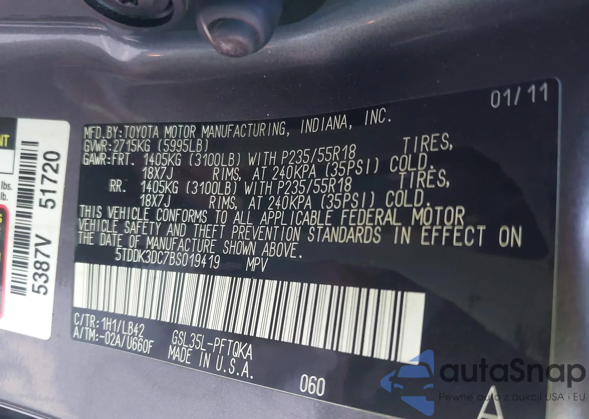 LOT: 43913965 VIN: 5TDKA3DC7BS005708
