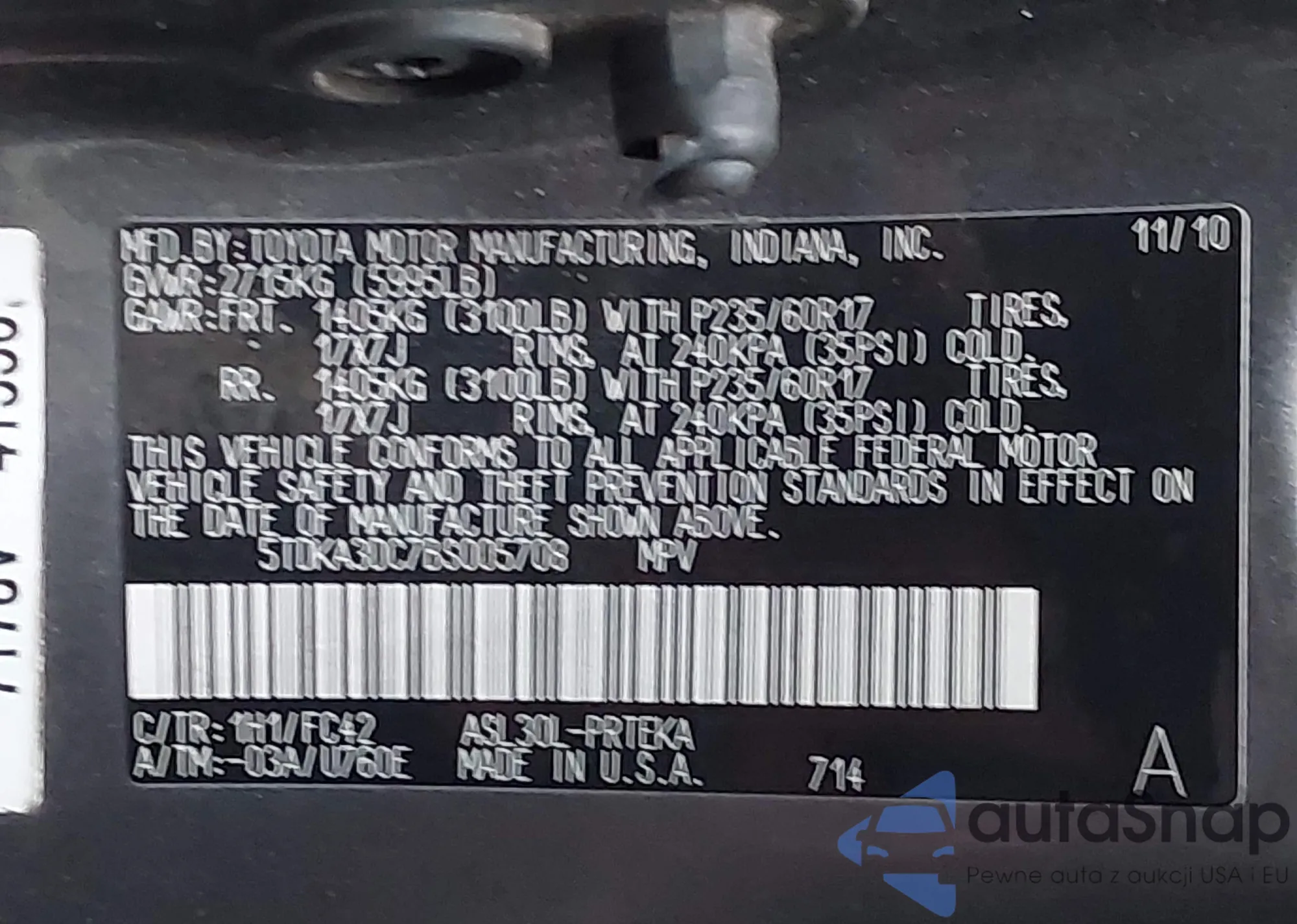 • VIN 5TDKA3DC7BS005708