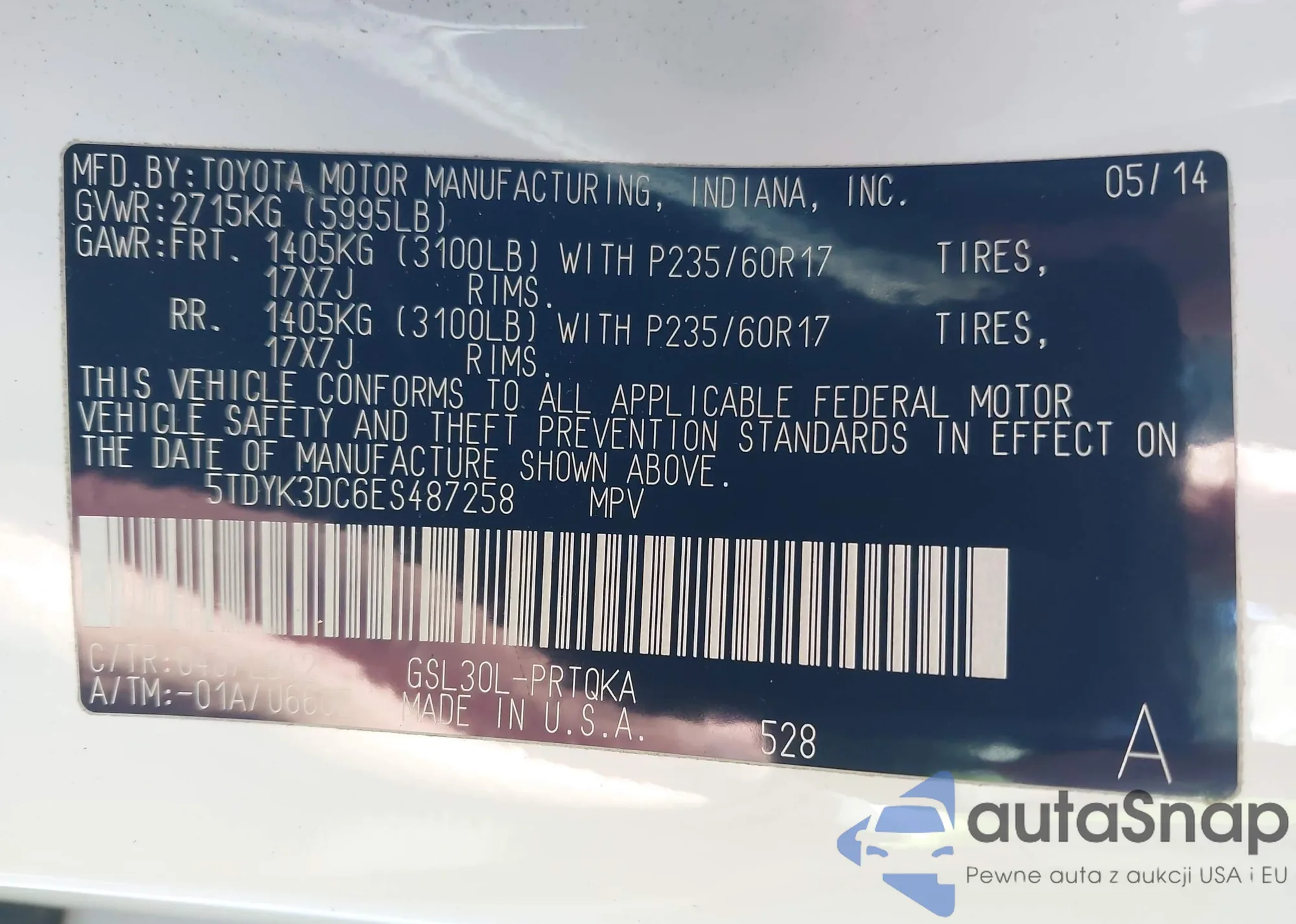 • VIN 5TDYK3DC6ES487258