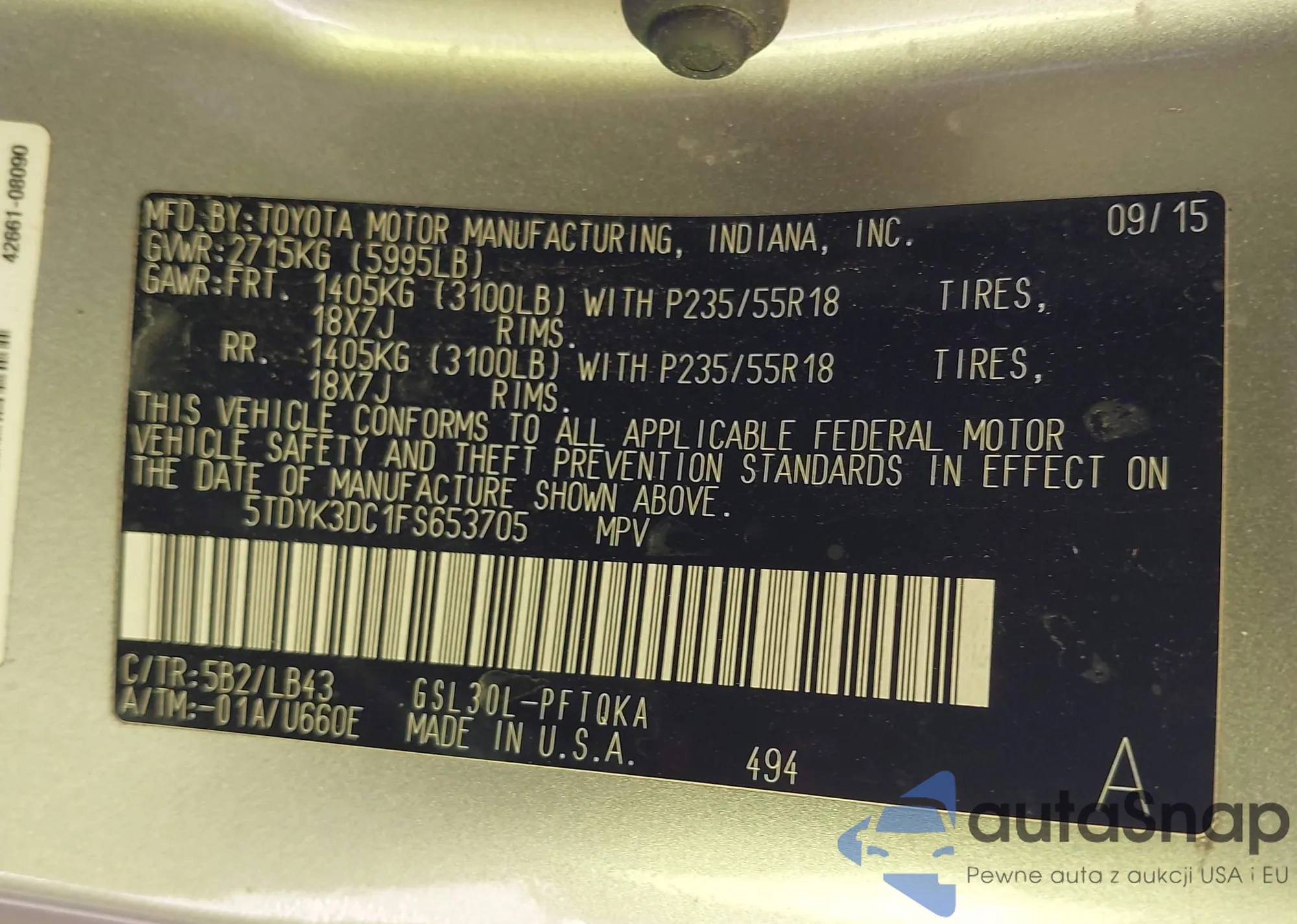 • VIN 5TDYK3DC1FS653705