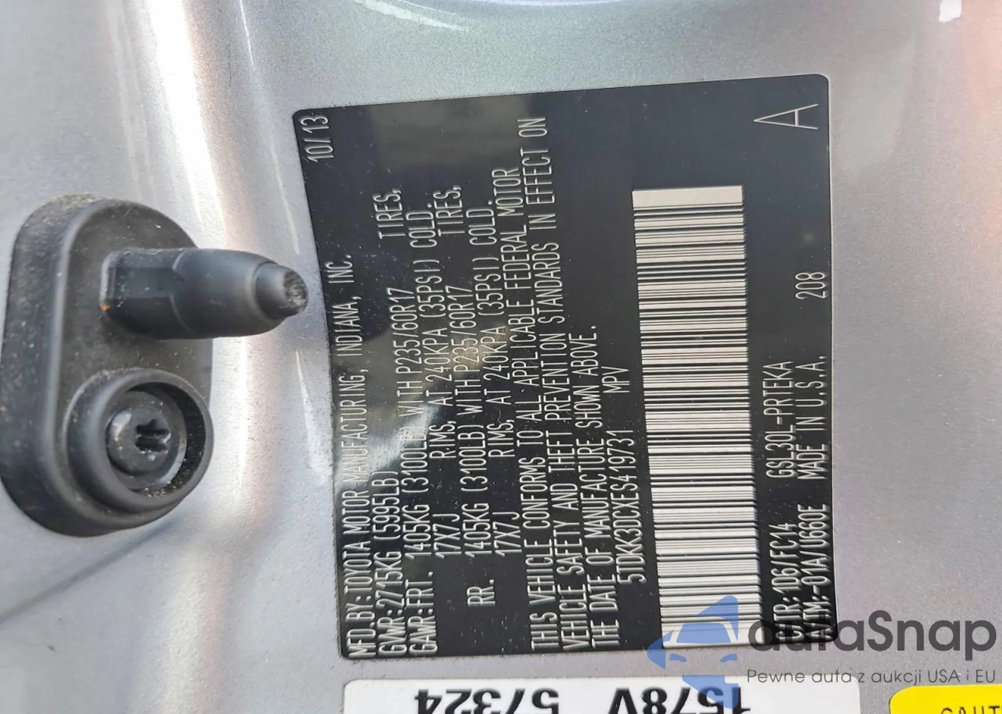 LOT: 86897225 VIN: 5TDYK3DC9DS403707