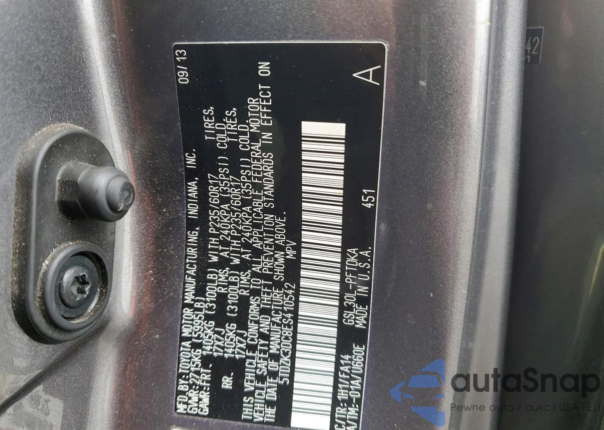 • VIN 5TDZK3DC8ES410542