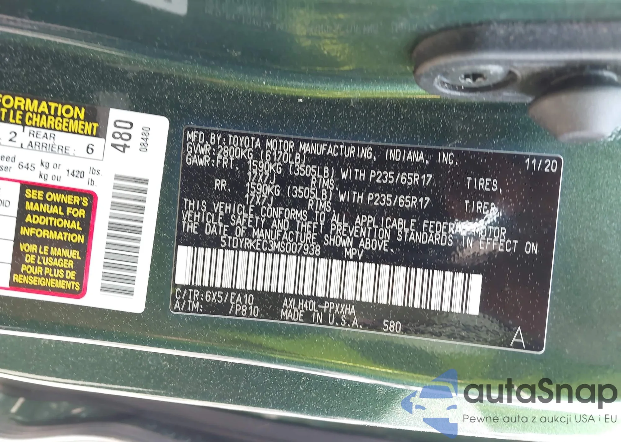 • VIN 5TDYRKEC3MS007938